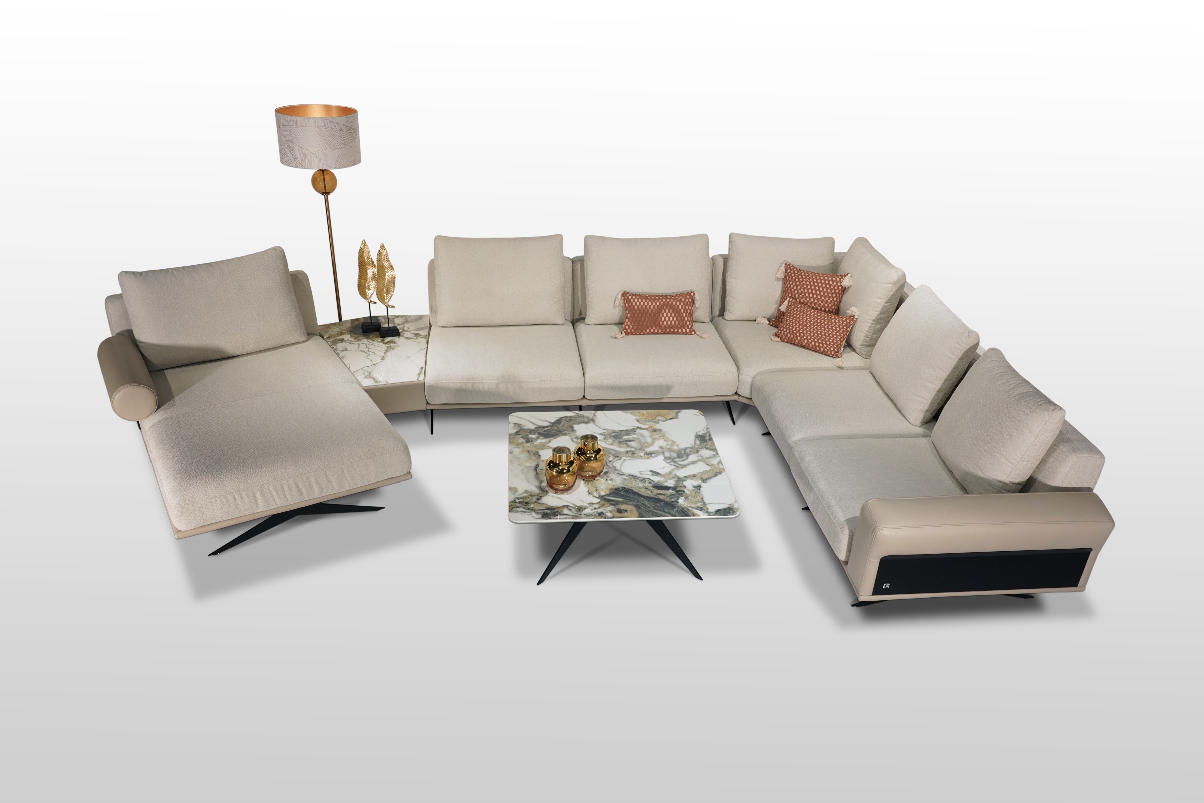 Narożnik możemy wykonać w dowolnej kolorystyce najlepszej jakości tkanin oraz dopasować kształt i wielkość pod możliwości salonu.