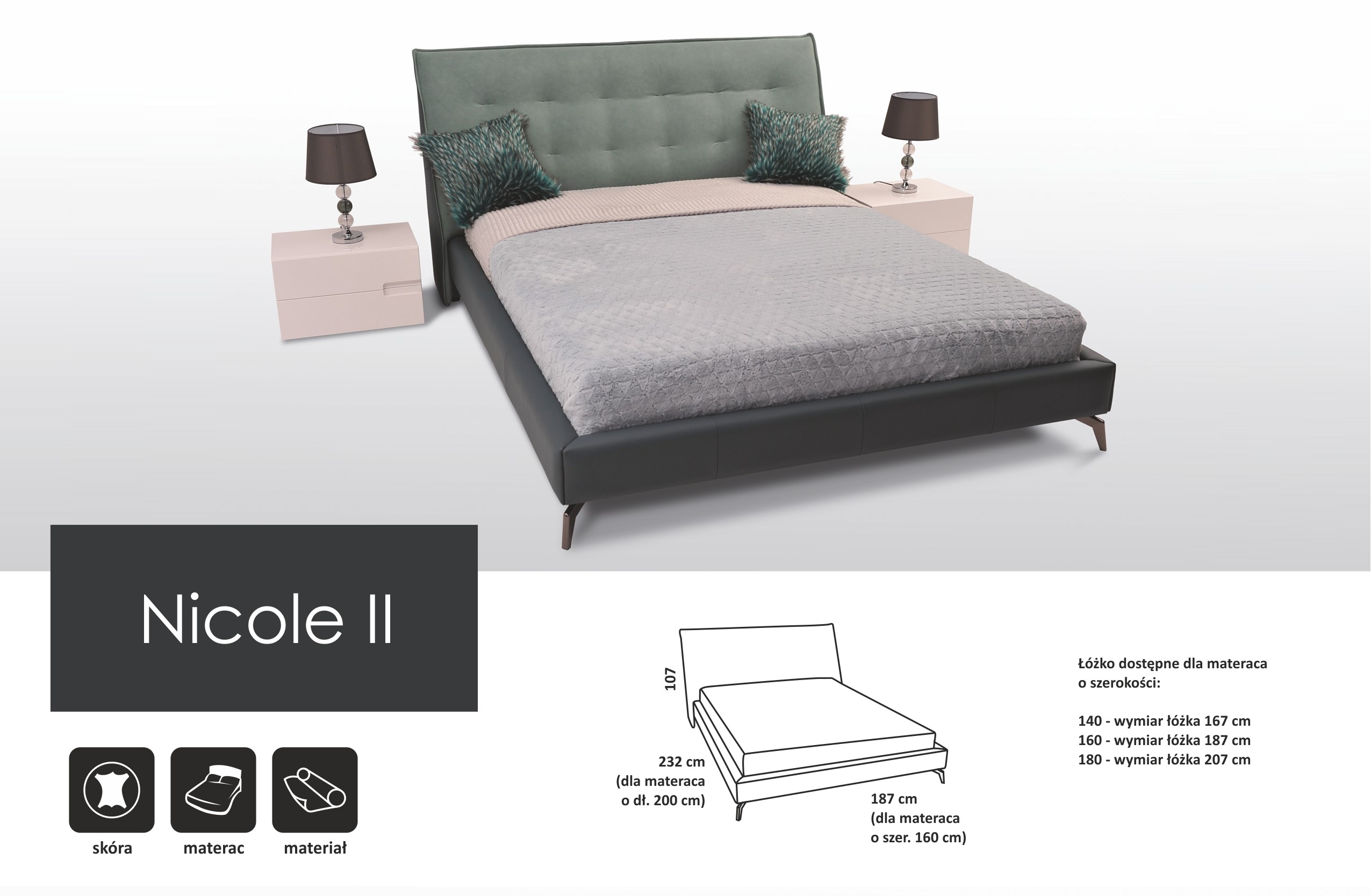 Nicole II - łóżko z pikowanym wezgłowiem na wyższych nóżkach