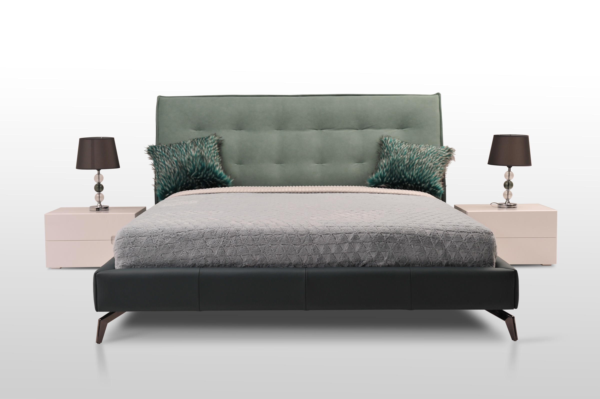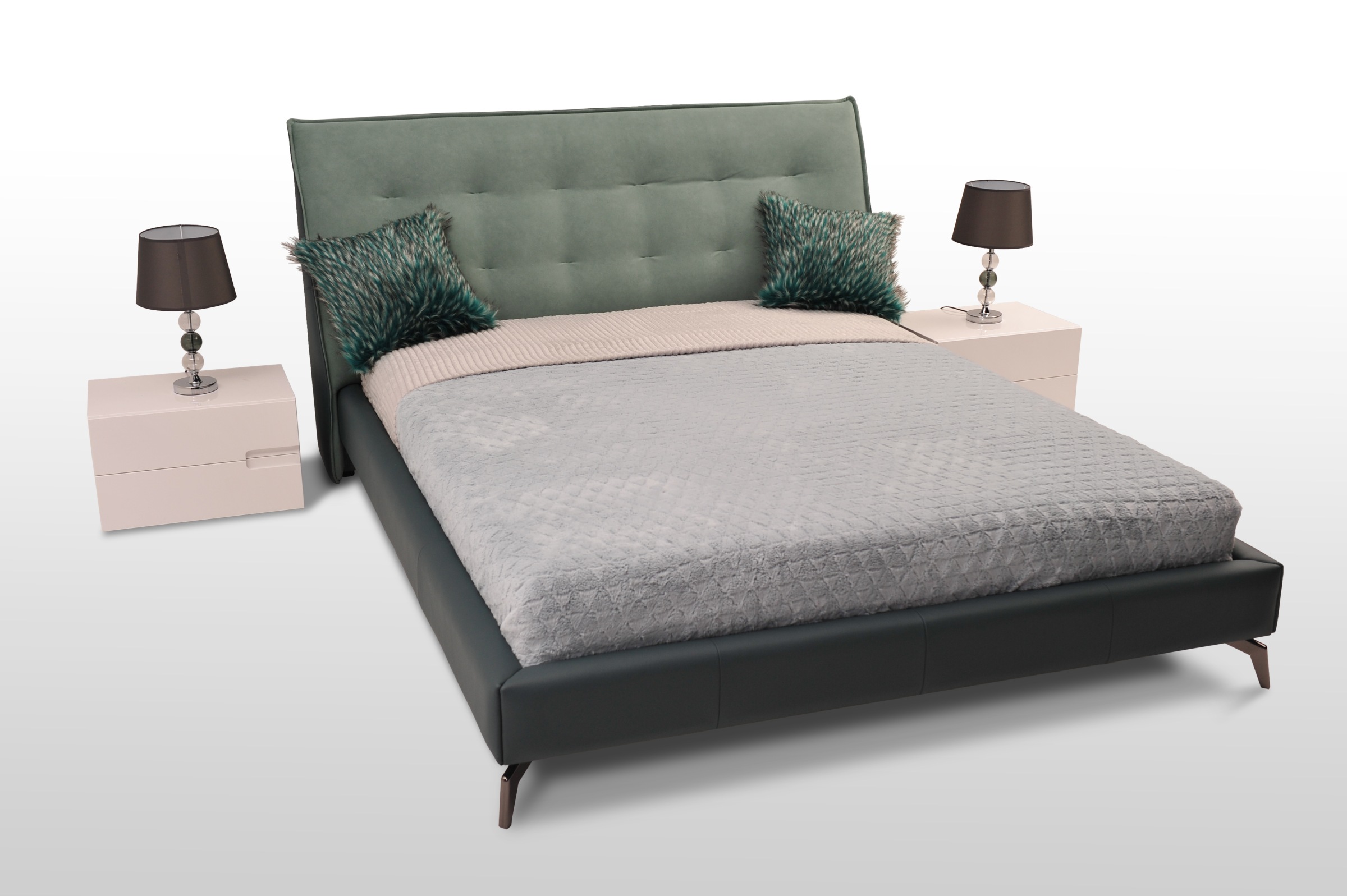 Nicole II – łóżko z pikowanym wezgłowiem na wysokich nogach.