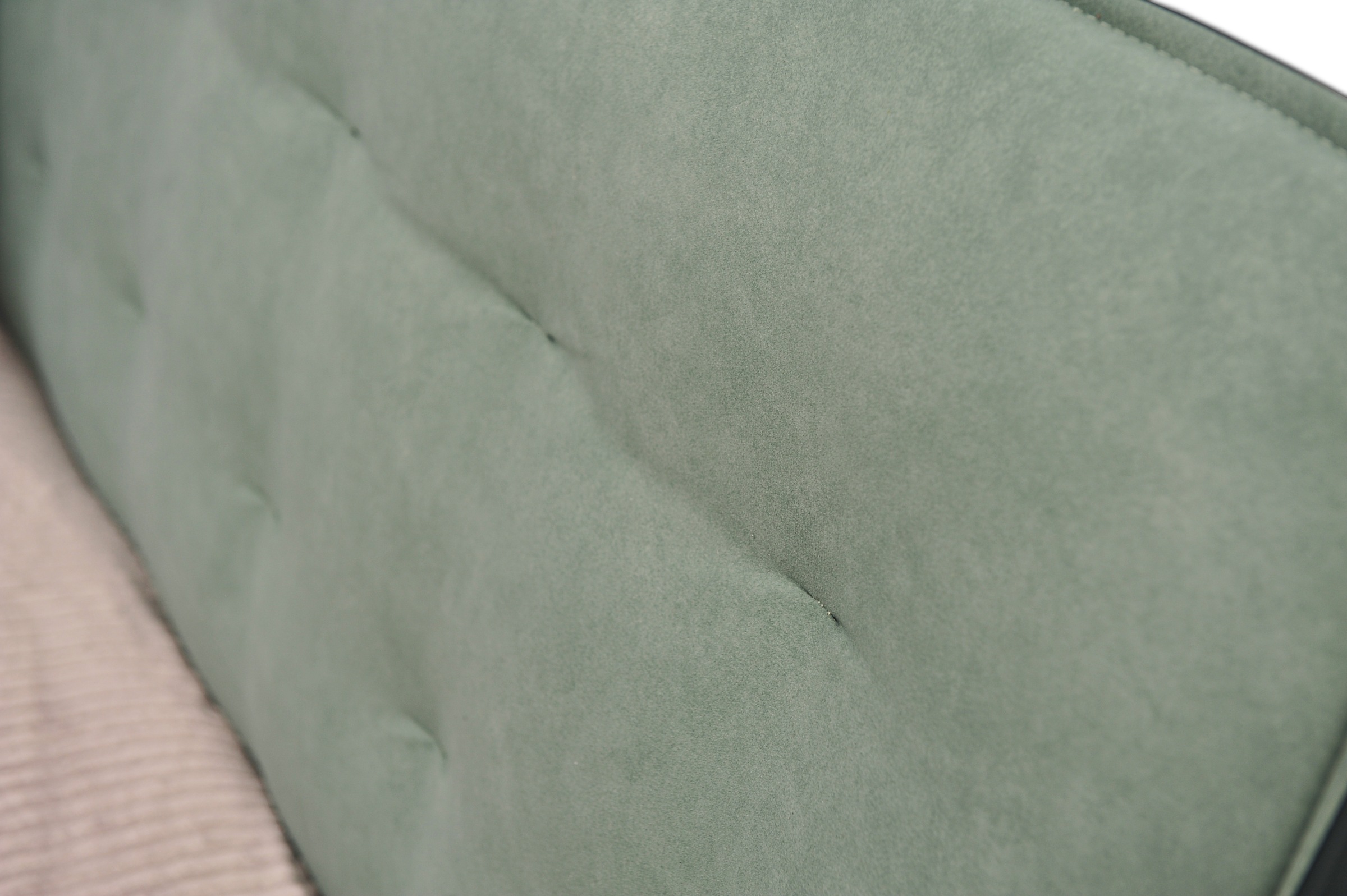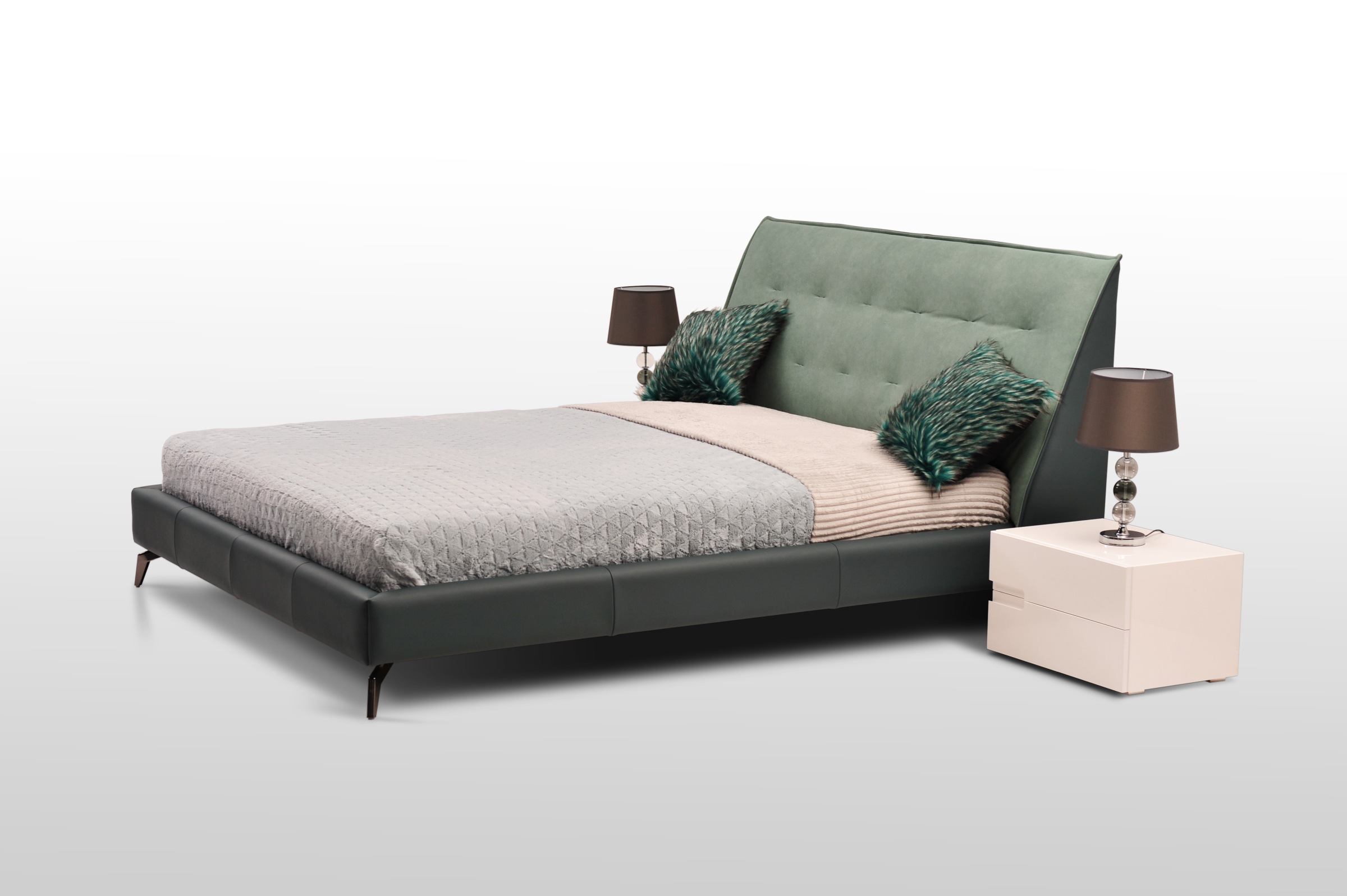 Łóżko z pikowanym wezgłowiem prezentuje się nieziemsko w nowoczesnej sypialni. Dzięki wysokim nogom jest lekkie i praktyczne – można swobodnie umyć pod nim podłogę. Jest wykonane z wysokiej jakości tkaniny oraz naturalnej skóry.