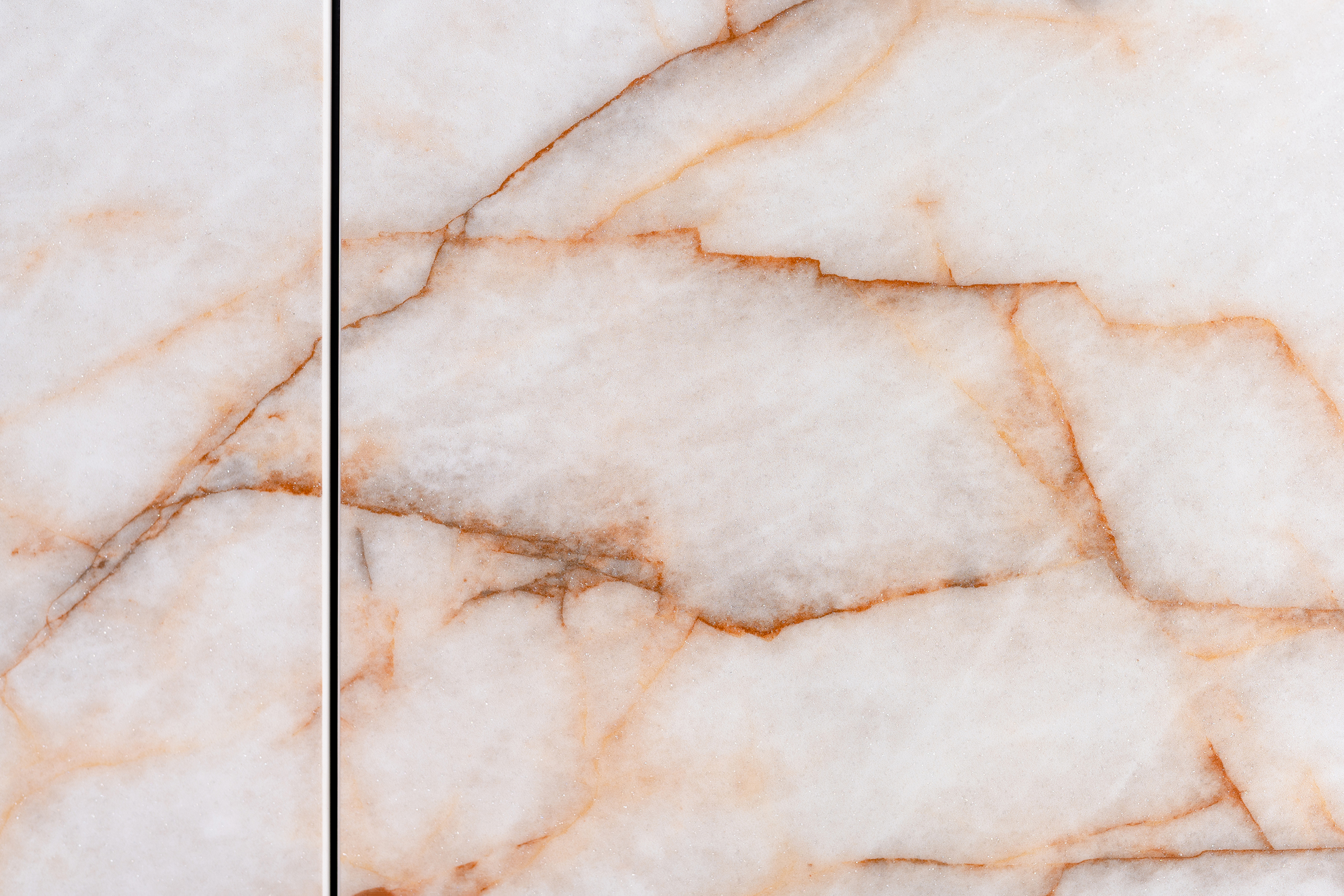 Nowoczesna komoda ze spiekiem kwarcowym Laminam jasny z cieplymi zylami bezowymi 2