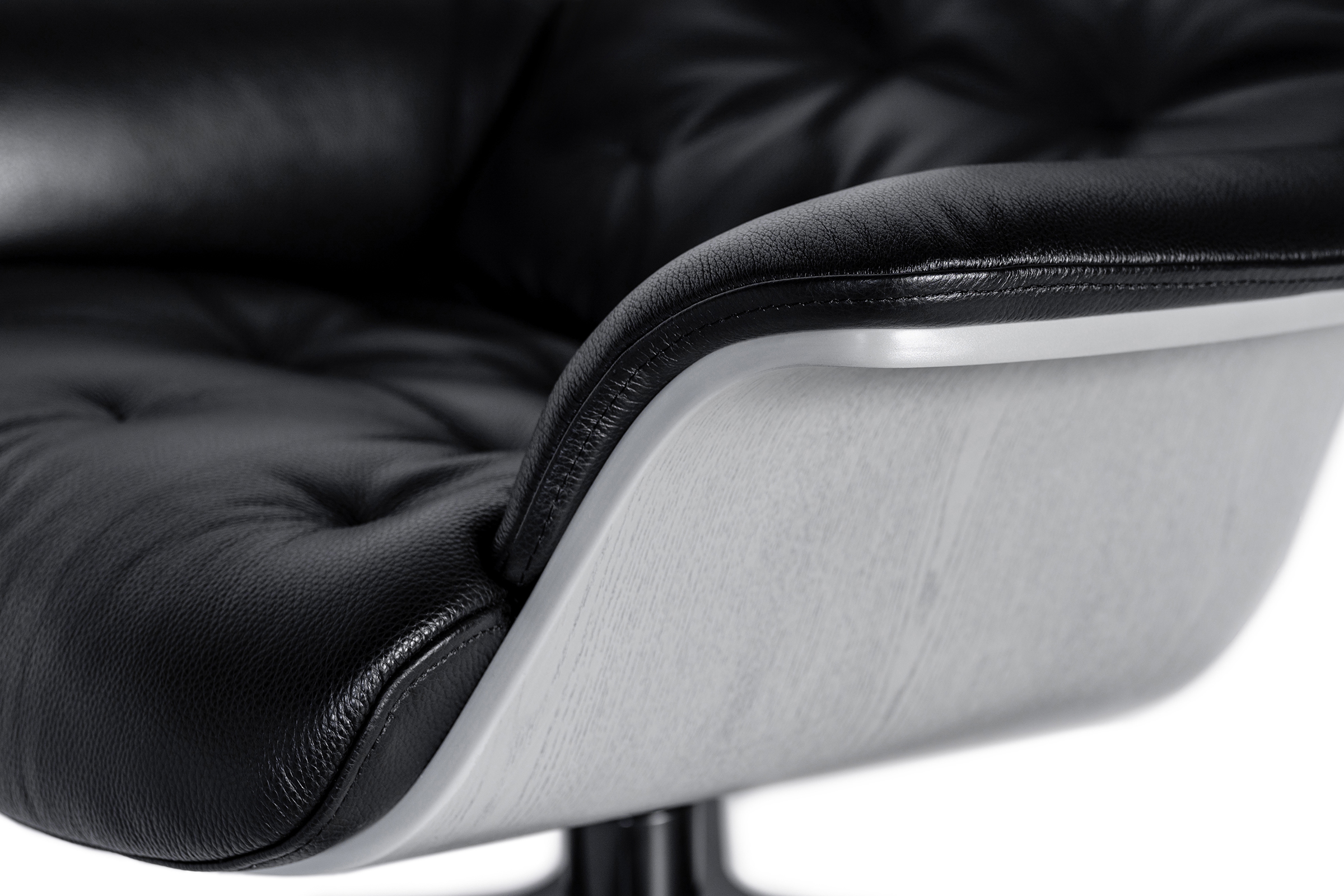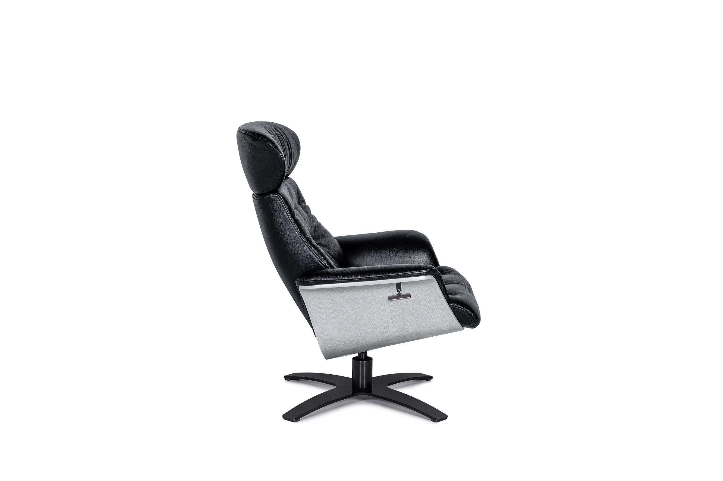 Nowoczesny Fotel Obrotowy z Dębowym Fornirem - Regulowane Oparcie, Czarny CD938