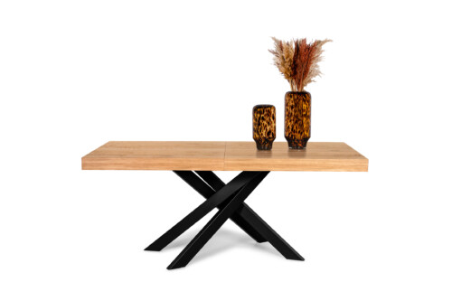 – Kolor i Materiał: Blat stołu z forniru Dąb Sękaty Szczotkowany prezentuje się naturalnie i elegancko, dodając wnętrzu wyjątkowego charakteru.