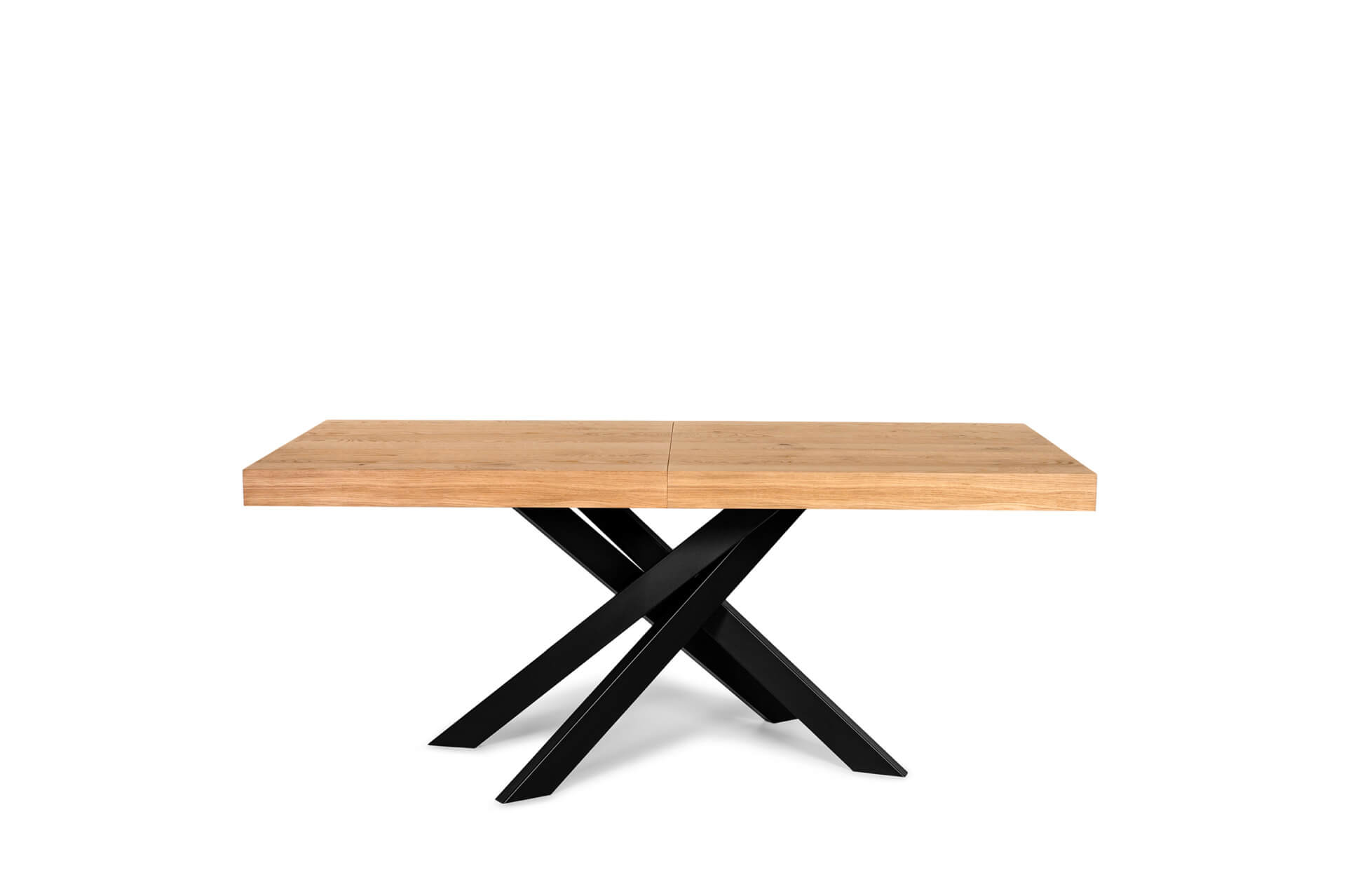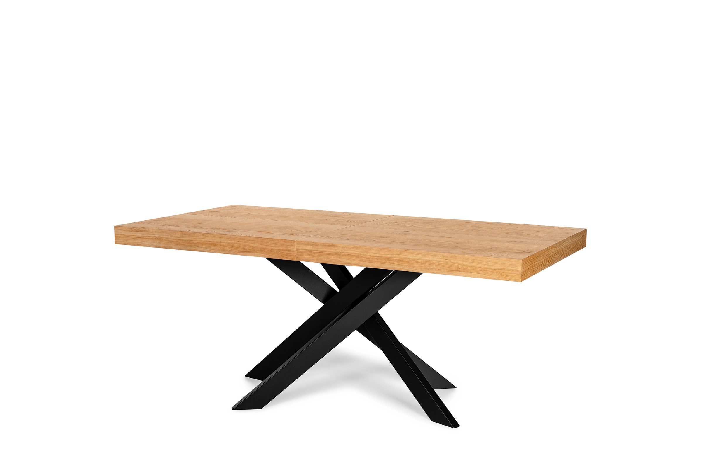 Fornirowany stol Dab naturalny szczotkowany z sekami na ciekawej nowoczesnej metalowej nodze jj