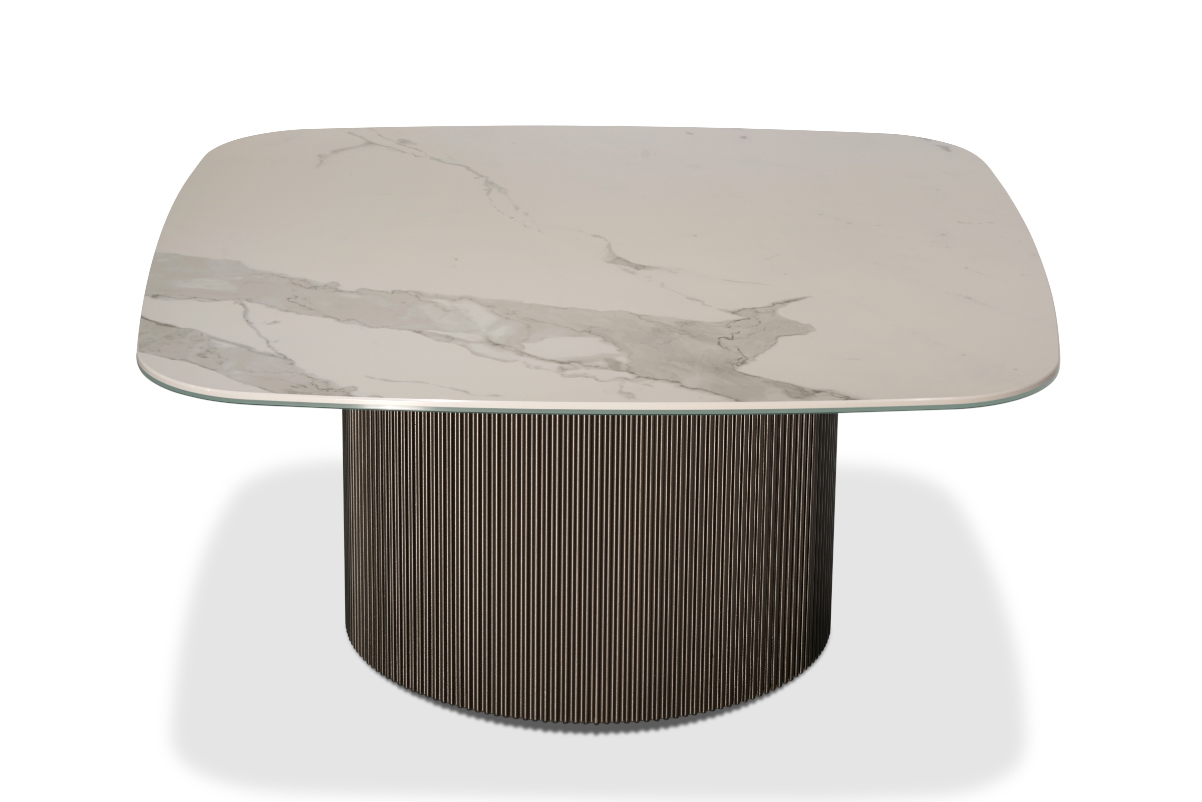 B43 – Ryflowany stolik kawowy z blatem z spieku kwarcowego Statuario Venato