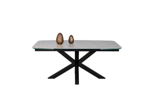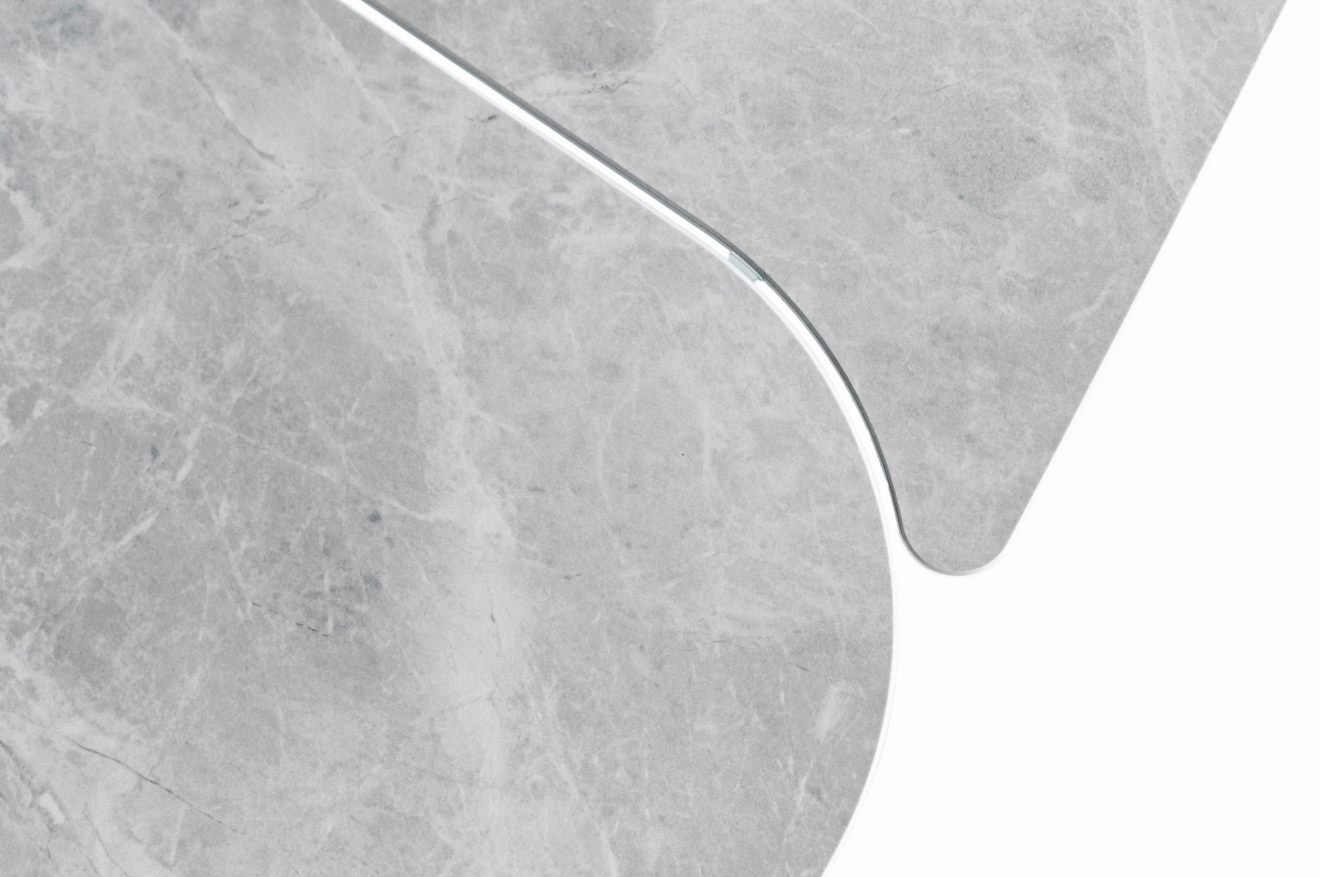 Stół A16 to połączenie ponadczasowego designu, precyzji wykonania i luksusowych materiałów. Blat w kształcie beczki wykonany został ze spieku na szkle w wykończeniu Diamond Cream Mat – matowa, kremowa powierzchnia o delikatnym rysunku kamienia subtelnie rozświetla przestrzeń, nadając jej ciepły i elegancki charakter.