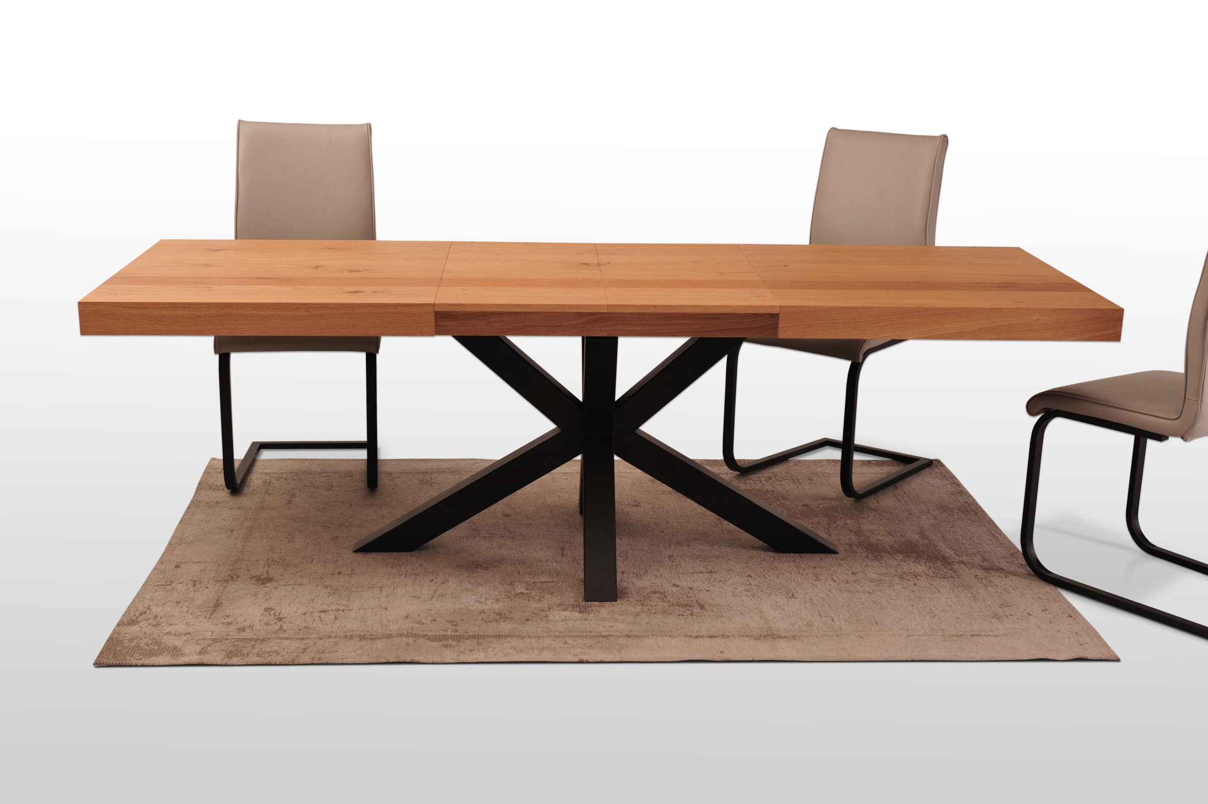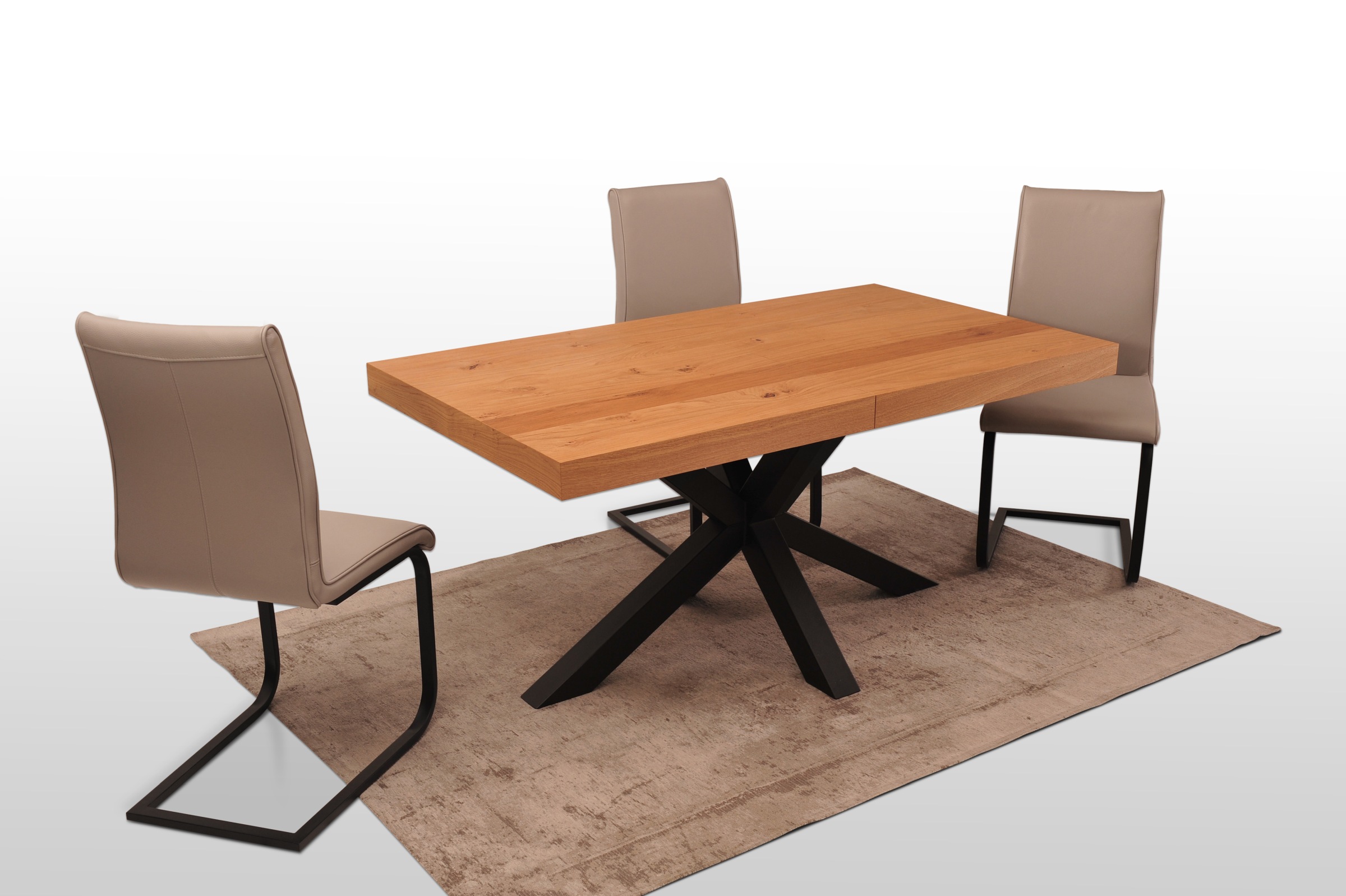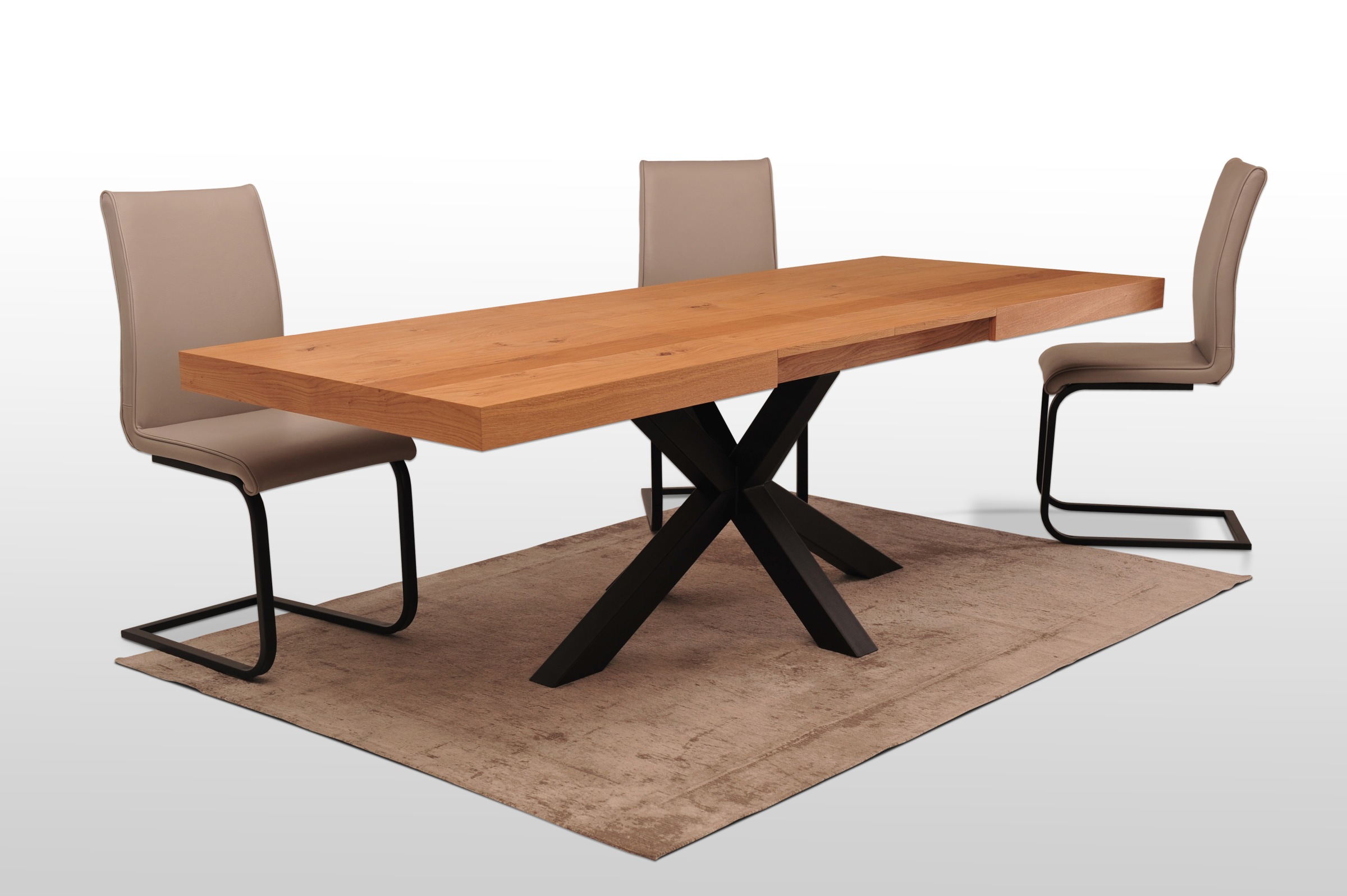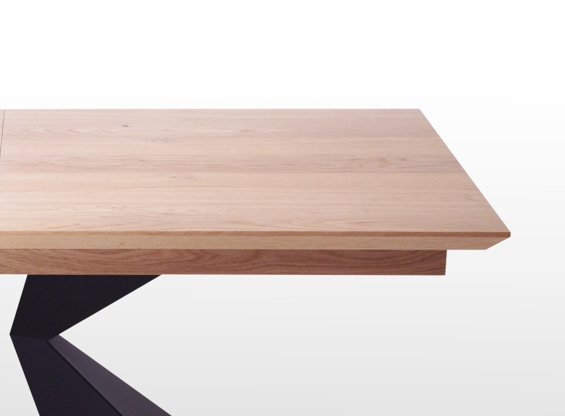 Stół z blatem z naturalnego forniru jest idealną propozycją dla osób chcących posiadać elementy drewna w domu oraz możliwość rozkładania stołu. Takiej opcji nie ma w stołach z litego dębu. Stół wpasuje się zarówno w loftowe, industrialne jak i rustykalne wnętrza. Fornir zabezpieczony jest lakierem, dzięki czemu nie ma potrzeby odświeżania koloru co pewien czas.