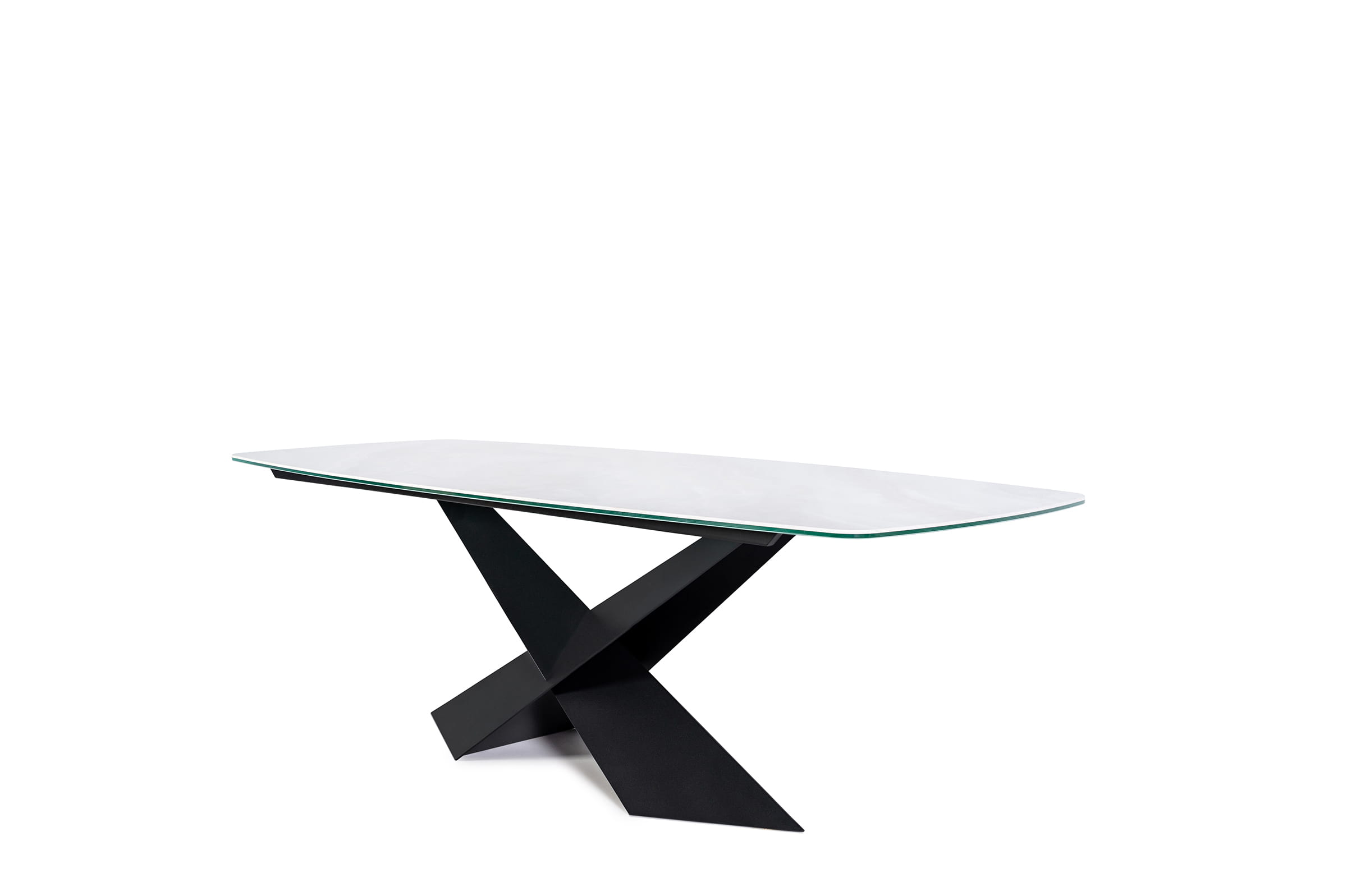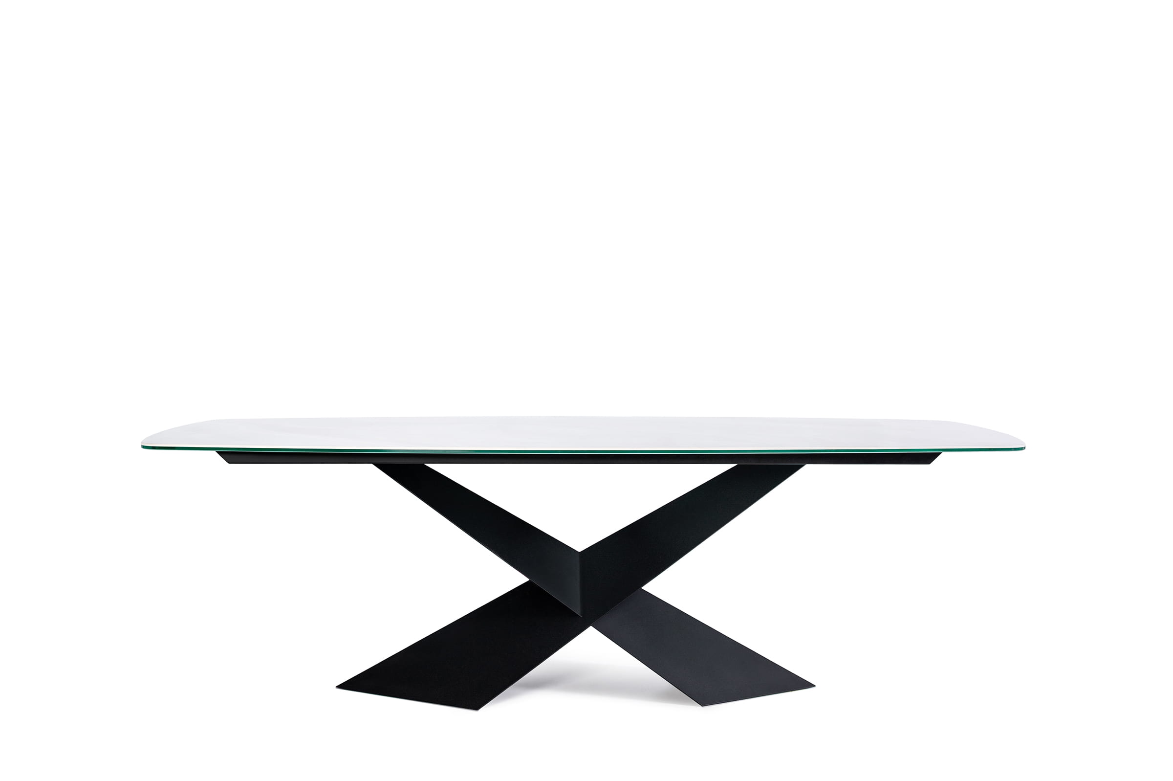 Stół A28 to propozycja dla wszystkich, którzy szukają designerskiego, a zarazem solidnego rozwiązania. Spiek kwarcowy Diamond Cream w połysku nadaje mu niepowtarzalnego uroku, a czarna noga X podkreśla loftowy charakter.