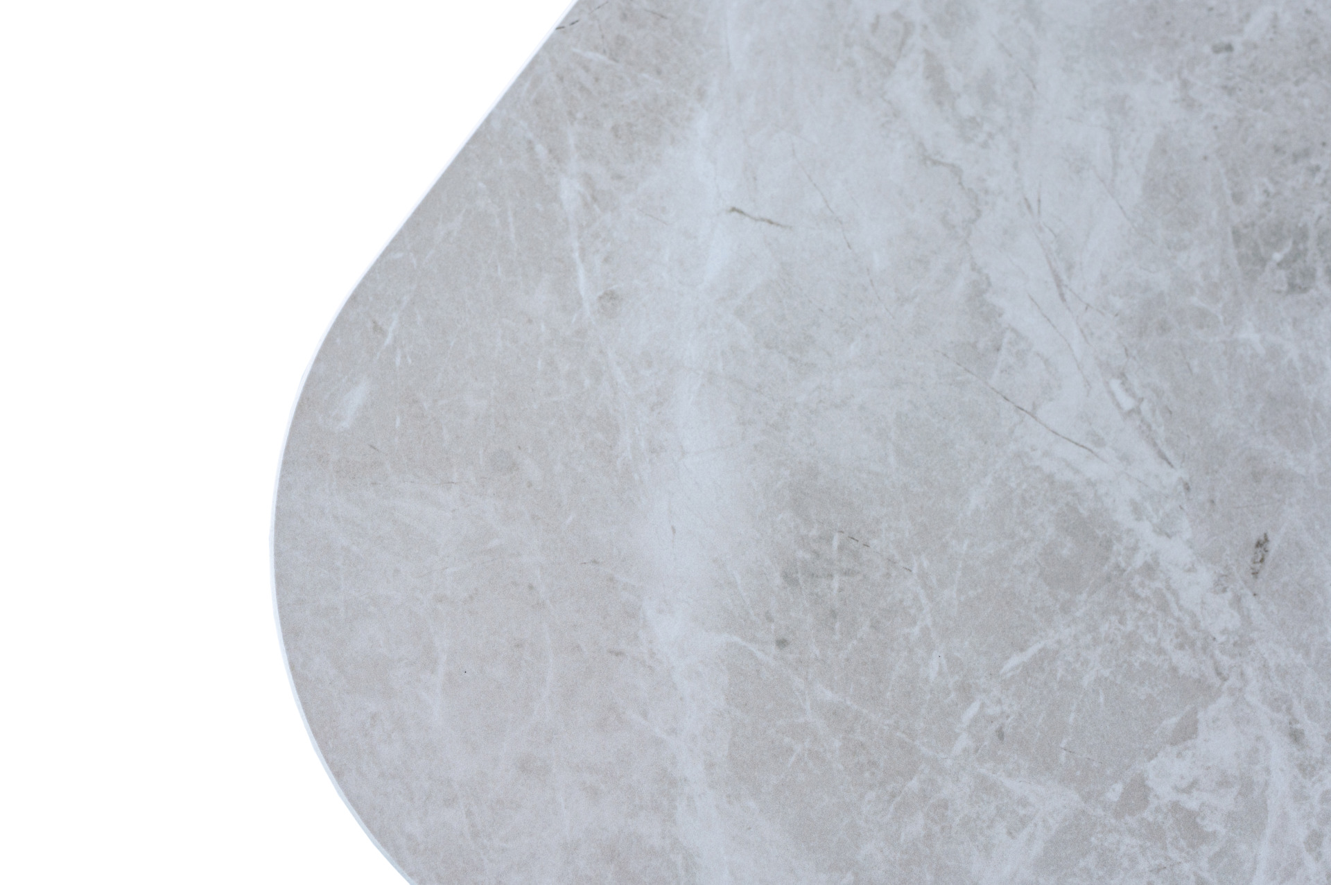 Kształt blatu w formie beczki nadaje meblowi lekkości i unikalnego wyglądu, a jego zaokrąglone krawędzie sprawiają, że stół prezentuje się harmonijnie w każdej przestrzeni – od klasycznej jadalni po nowoczesny salon. Stabilna podstawa w kolorze szampańskim FP 0320 doskonale dopełnia kremowy spiek, tworząc wyjątkowo eleganckie zestawienie materiałów i barw.
