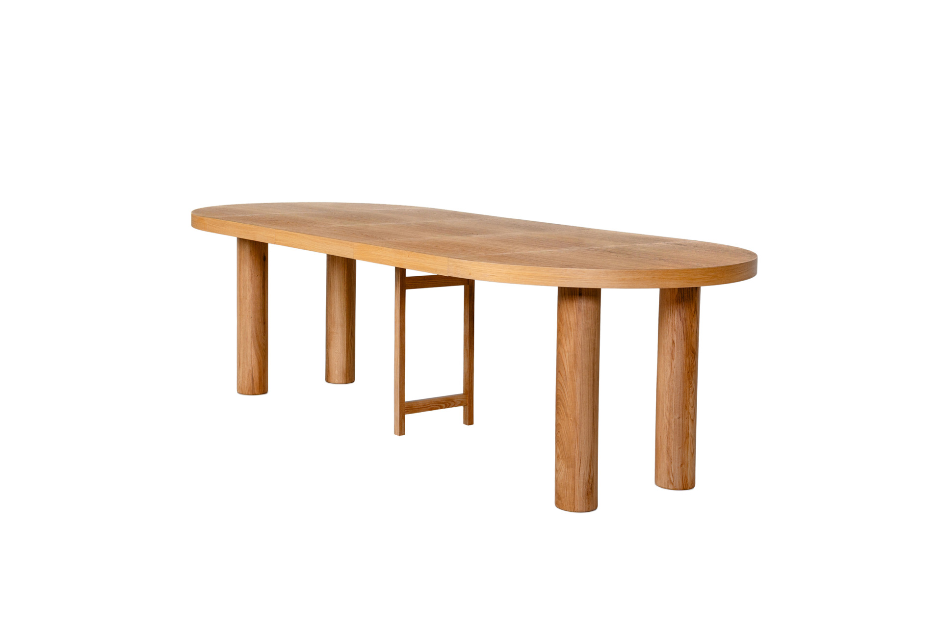 Stół Amur to połączenie nowoczesnego designu z klasycznym ciepłem naturalnego drewna. Wykonany w całości z forniru dębowego – dąb sękaty szczotkowany, przyciąga wzrok unikalną strukturą słojów i subtelnym szczotkowaniem, które wydobywa głębię materiału.