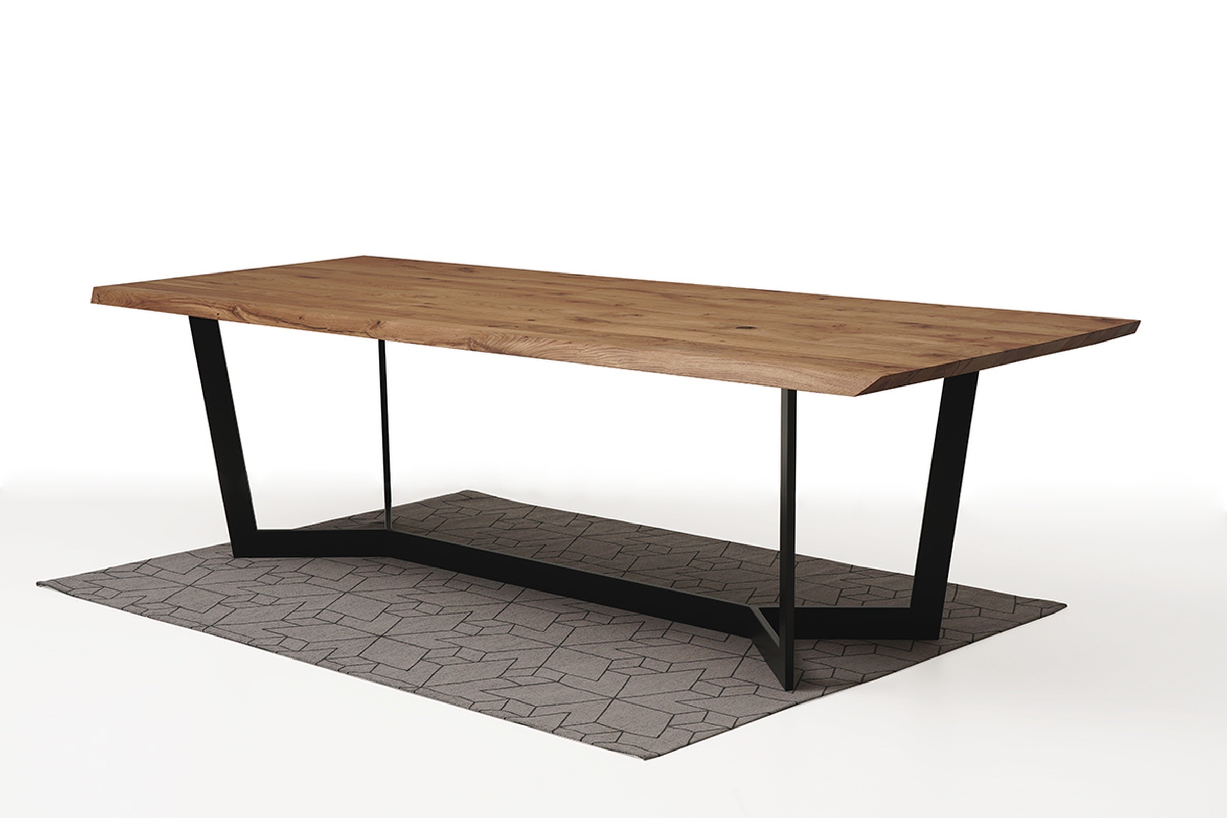 Na podstawie Fermo istnieje możliwość wykonania stołu z blatem z litego drewna dębowego lub w matowym albo polerowanym spieku kwarcowym.