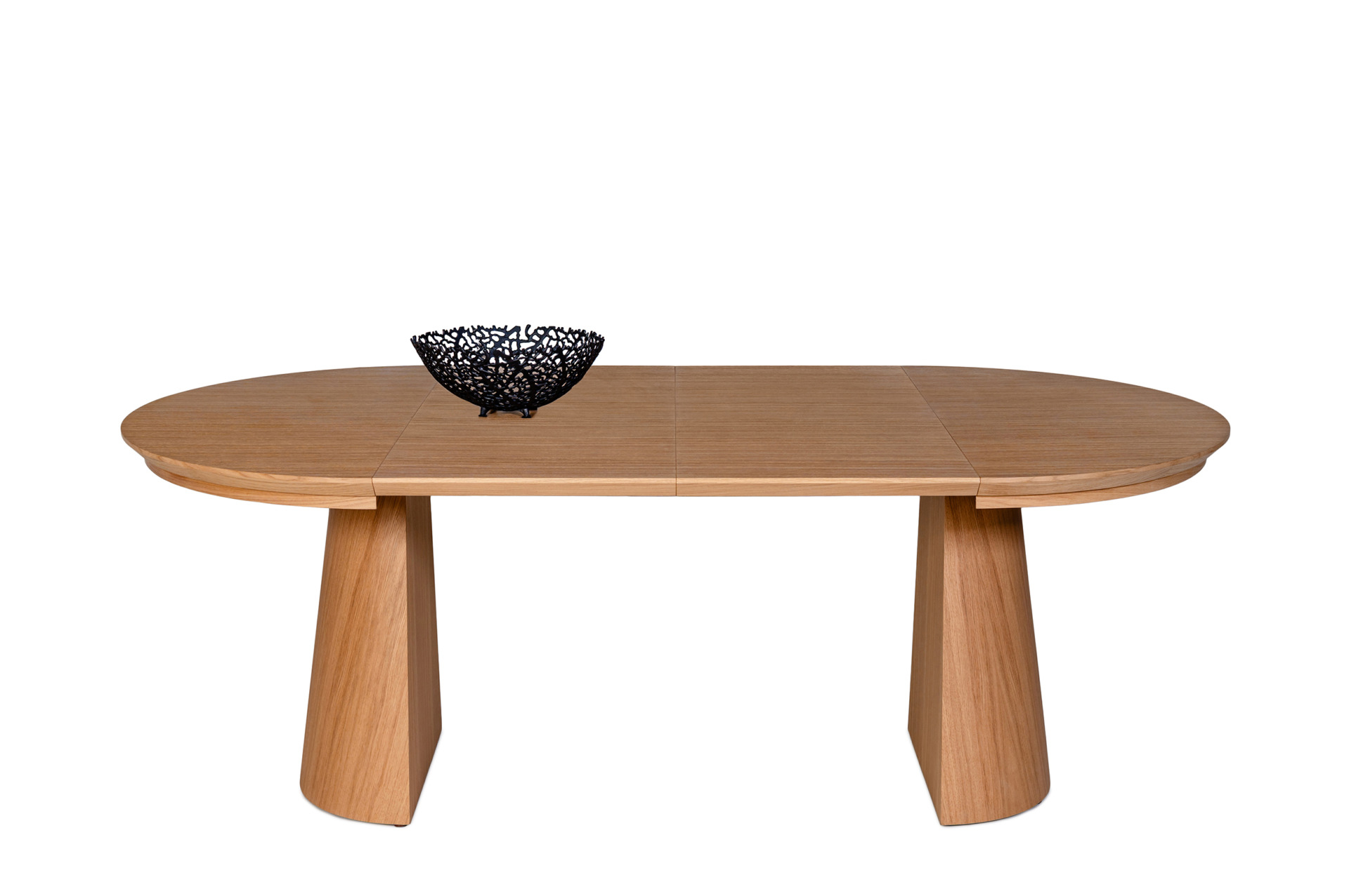 Stół L3 to połączenie elegancji, funkcjonalności i nowoczesnego designu. Jego charakterystycznym elementem jest gładka, stożkowa noga, która nadaje całości minimalistyczny, a jednocześnie wyrafinowany wygląd. Wykonany z forniru dębowego w naturalnym odcieniu, stanowi idealny wybór do wnętrz urządzonych w stylu nowoczesnym, skandynawskim czy boho.