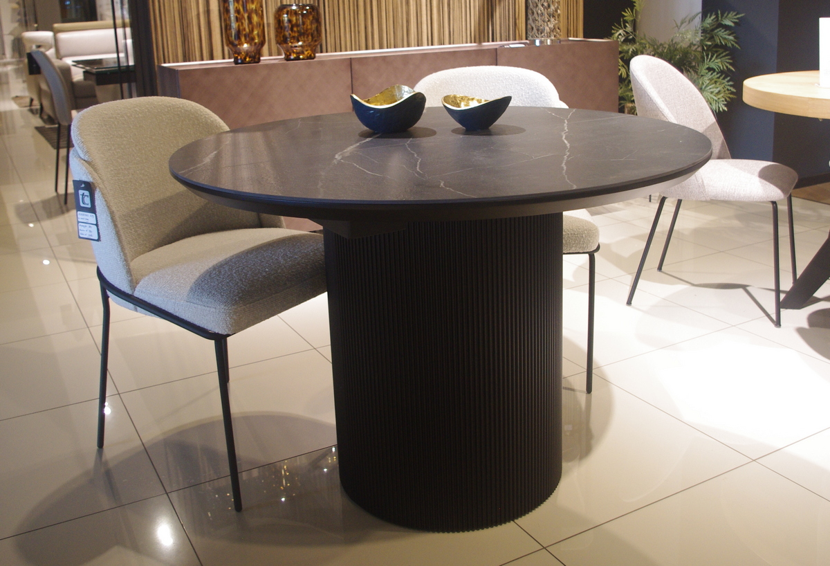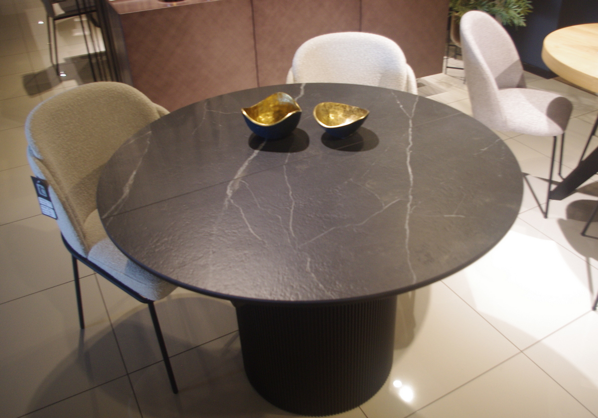 STÓŁ OKRĄGŁY śr. 110 cm + 4×50 cm Calacatta Black