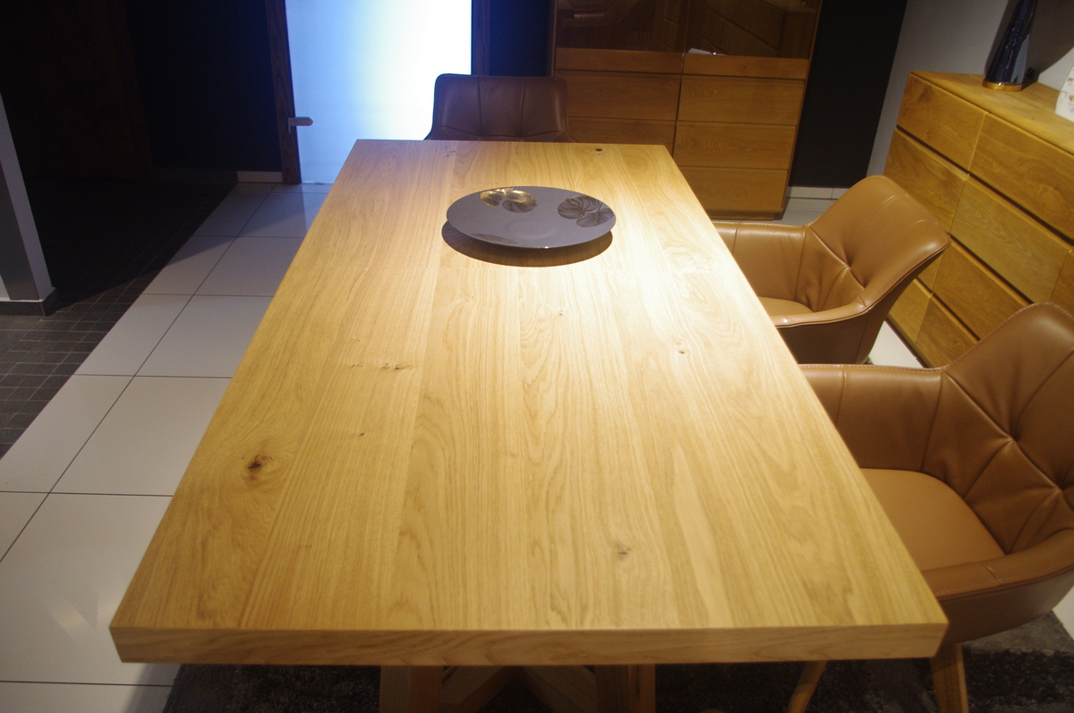 Stół wykonany jest w fornirze dębowym – sękatym szczotkowanym