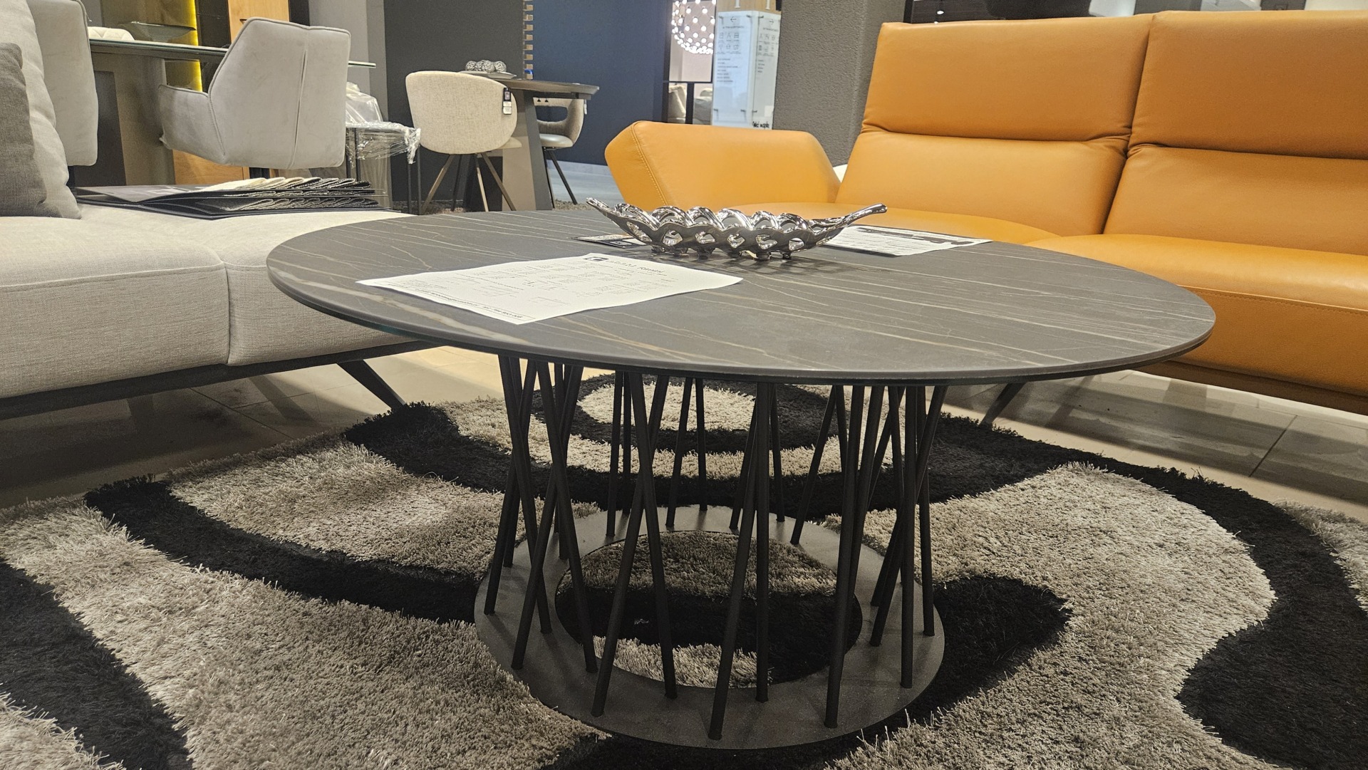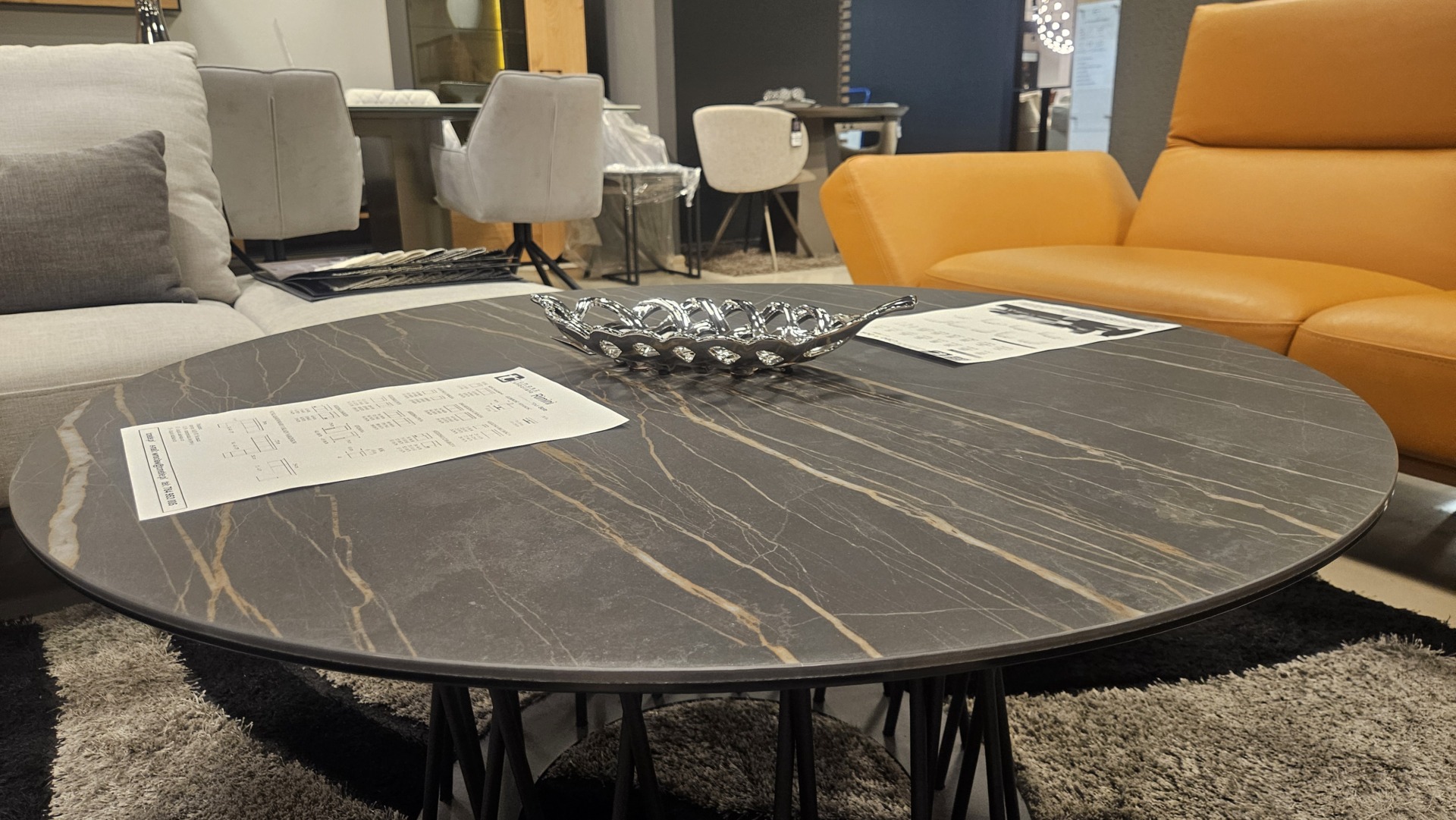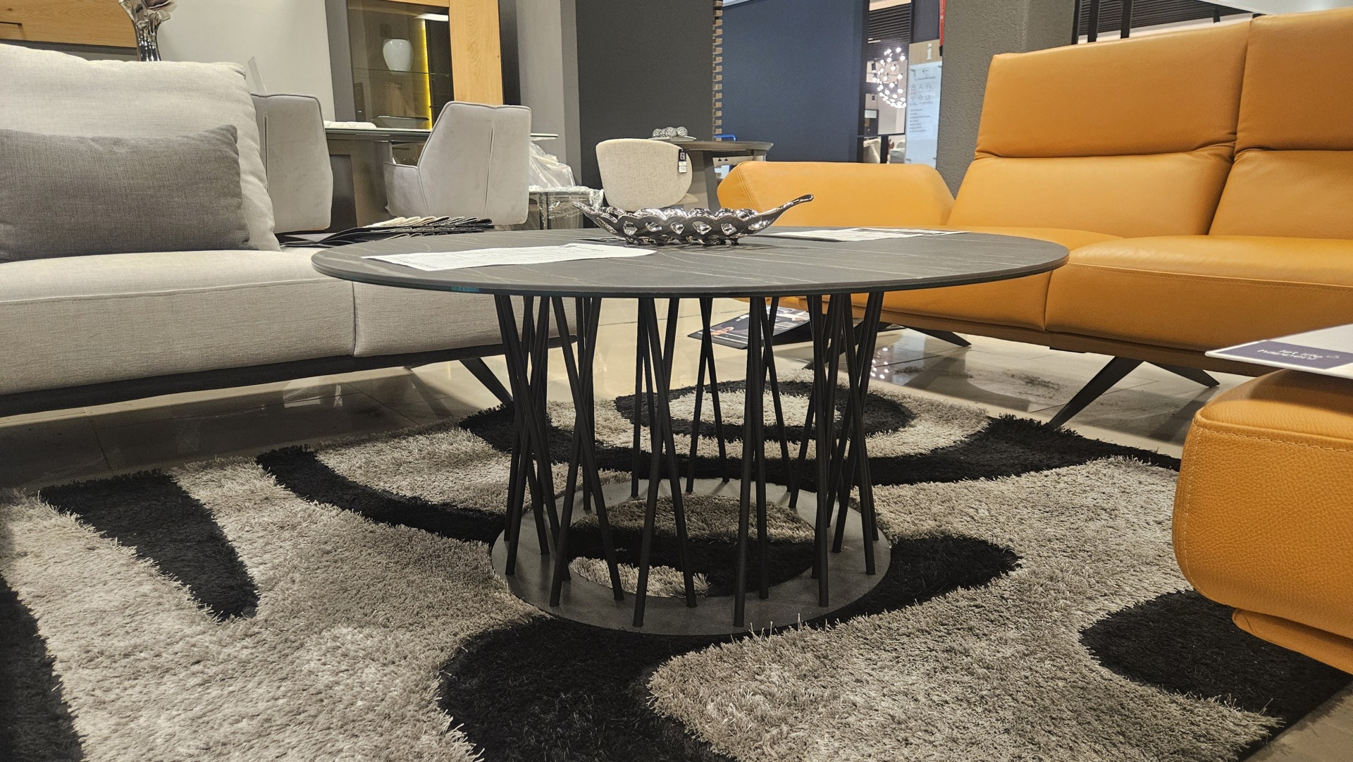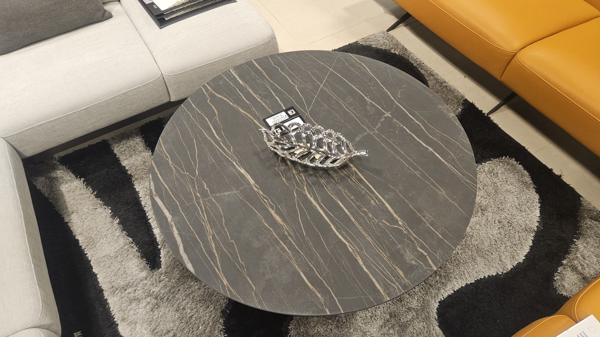 Lekka nowoczesna konstrukcja stolika kawowego z okraglym blatem ze spieku kwarcowego ceramiczny blat laminam 2