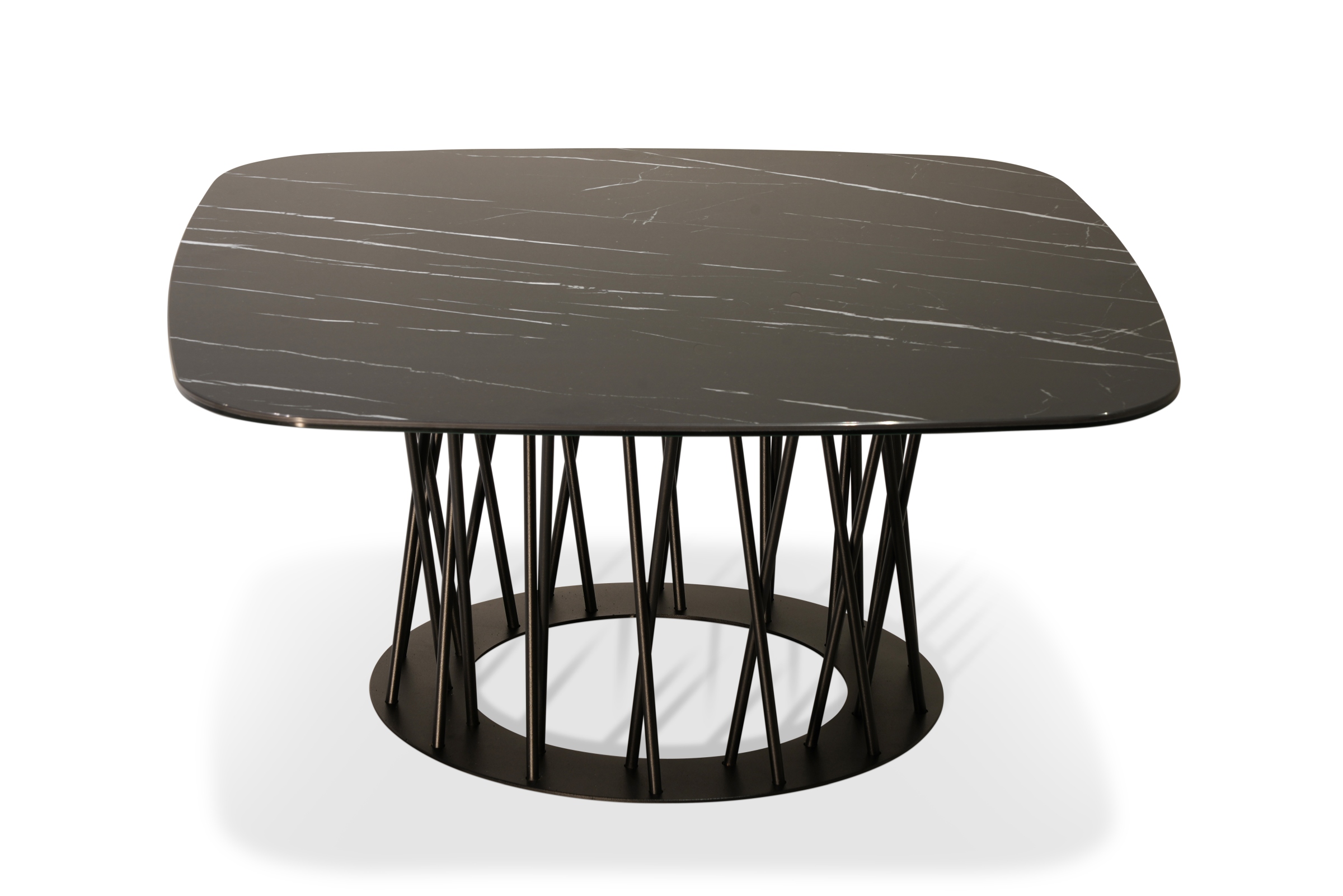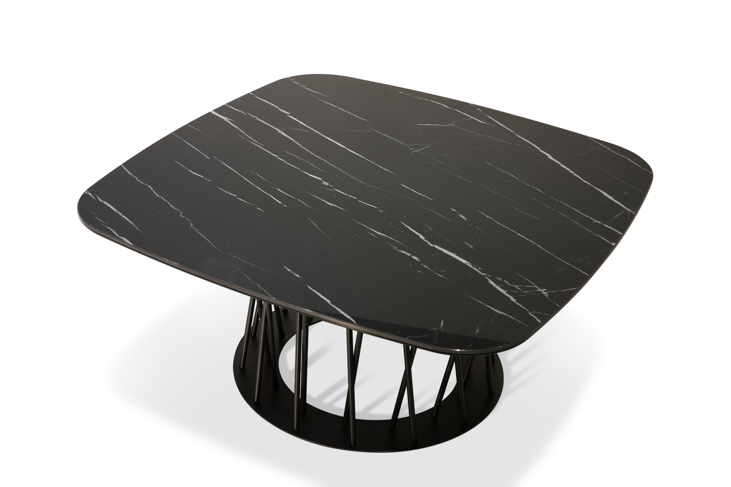 B33 stolik kawowy z polerowanym spiekiem kwarcowym. Model pokazany na zdjęciach posiada blat w kolorze: Nero Marquina.