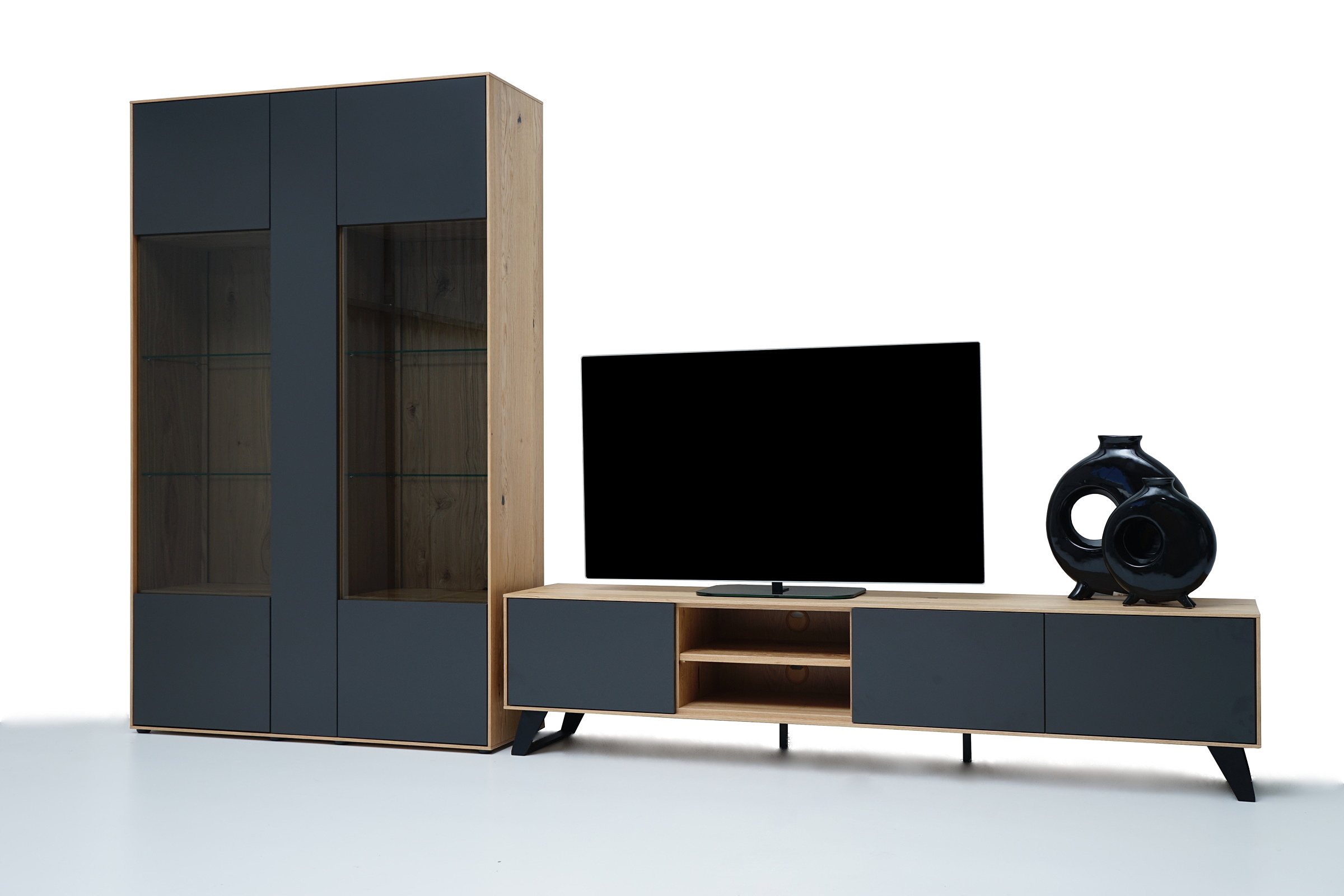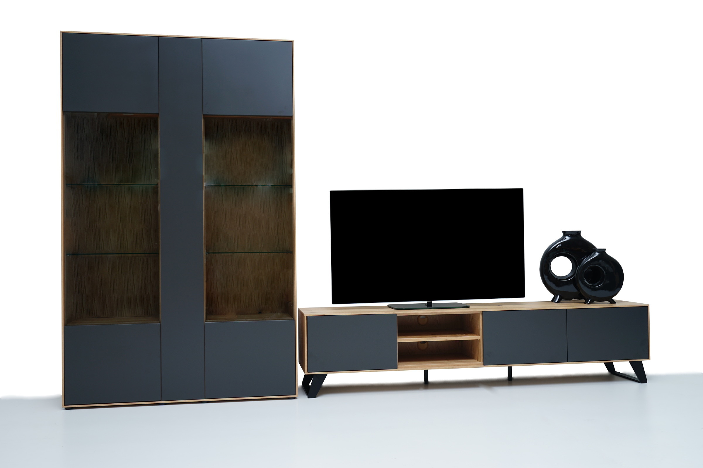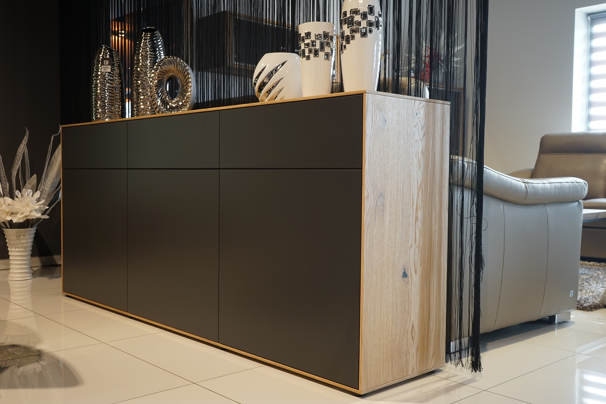 SYDNEY – MEBLE ZE SZCZOTKOWANEGO FORNIRU DĘBOWEGO Z ANTRACYTOWYMI FRONTAMI