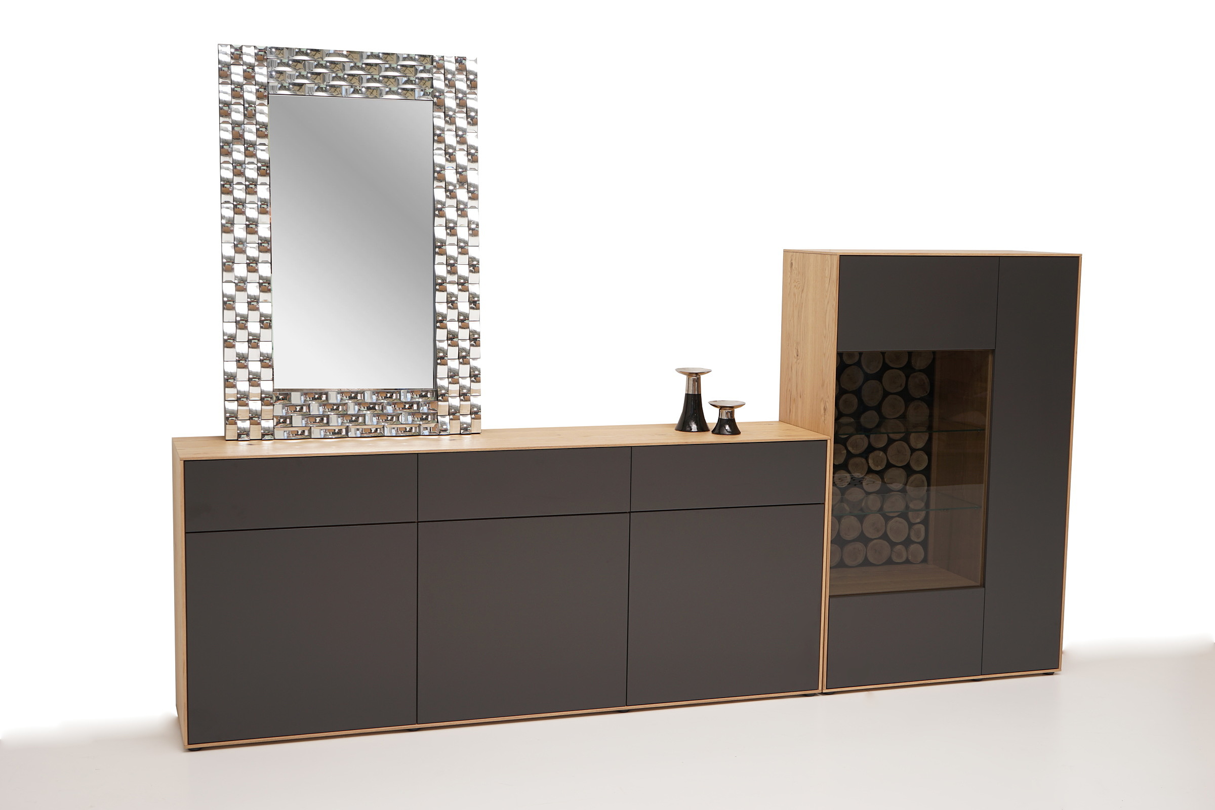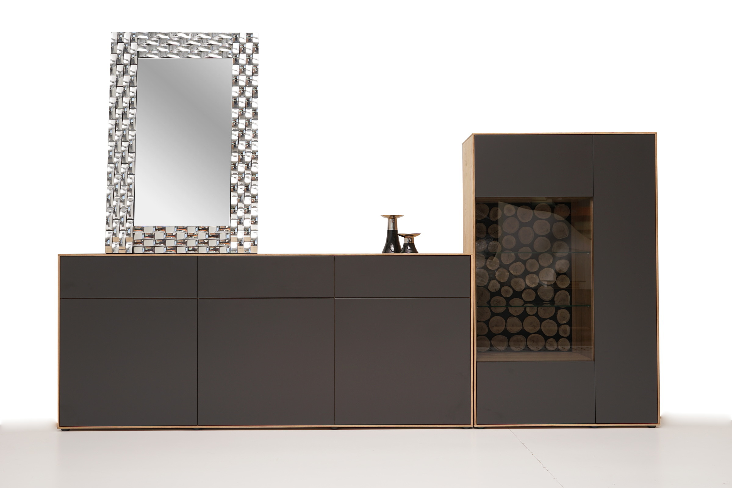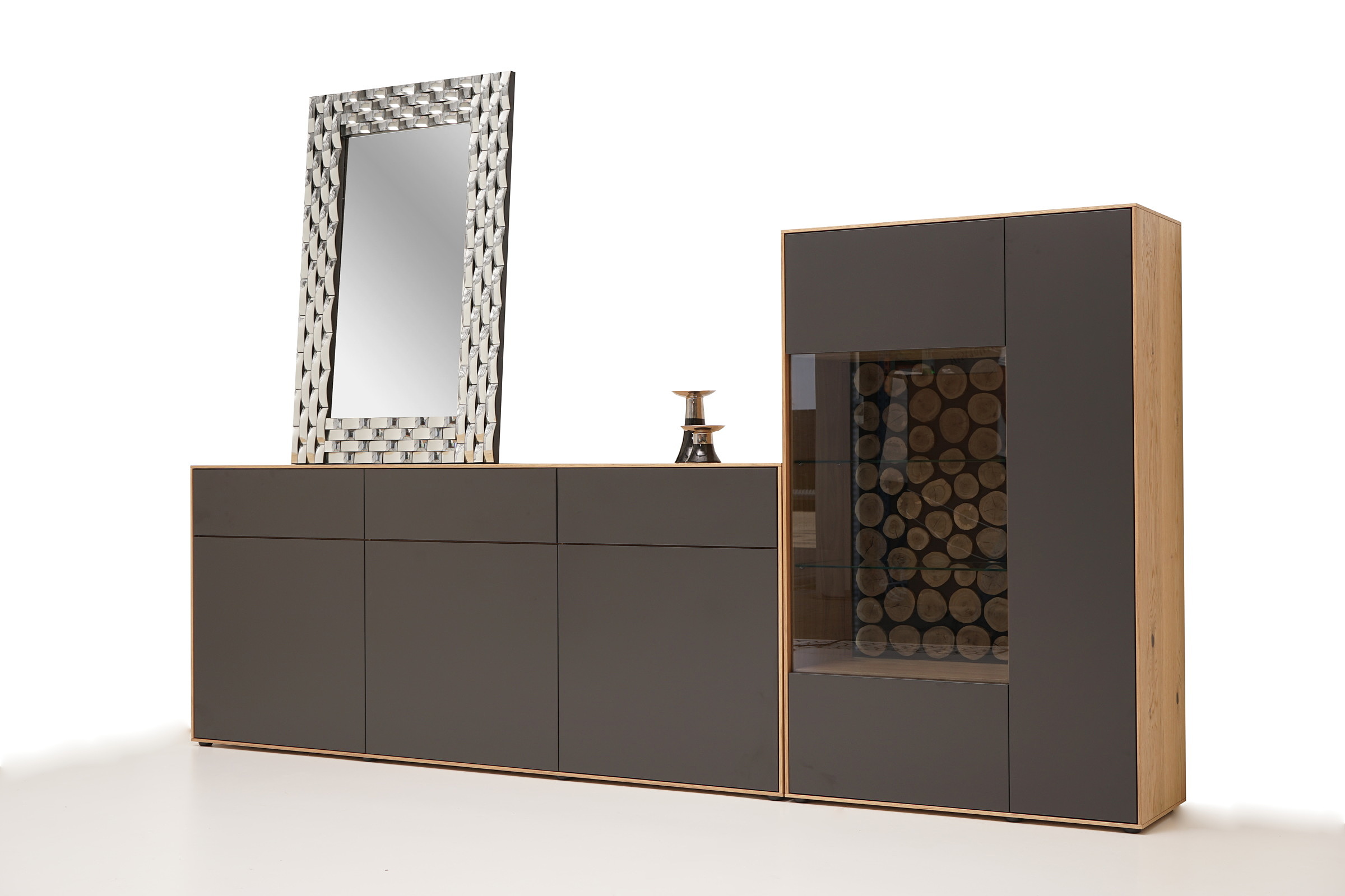 SYDNEY – MEBLE ZE SZCZOTKOWANEGO FORNIRU DĘBOWEGO Z ANTRACYTOWYMI FRONTAMI