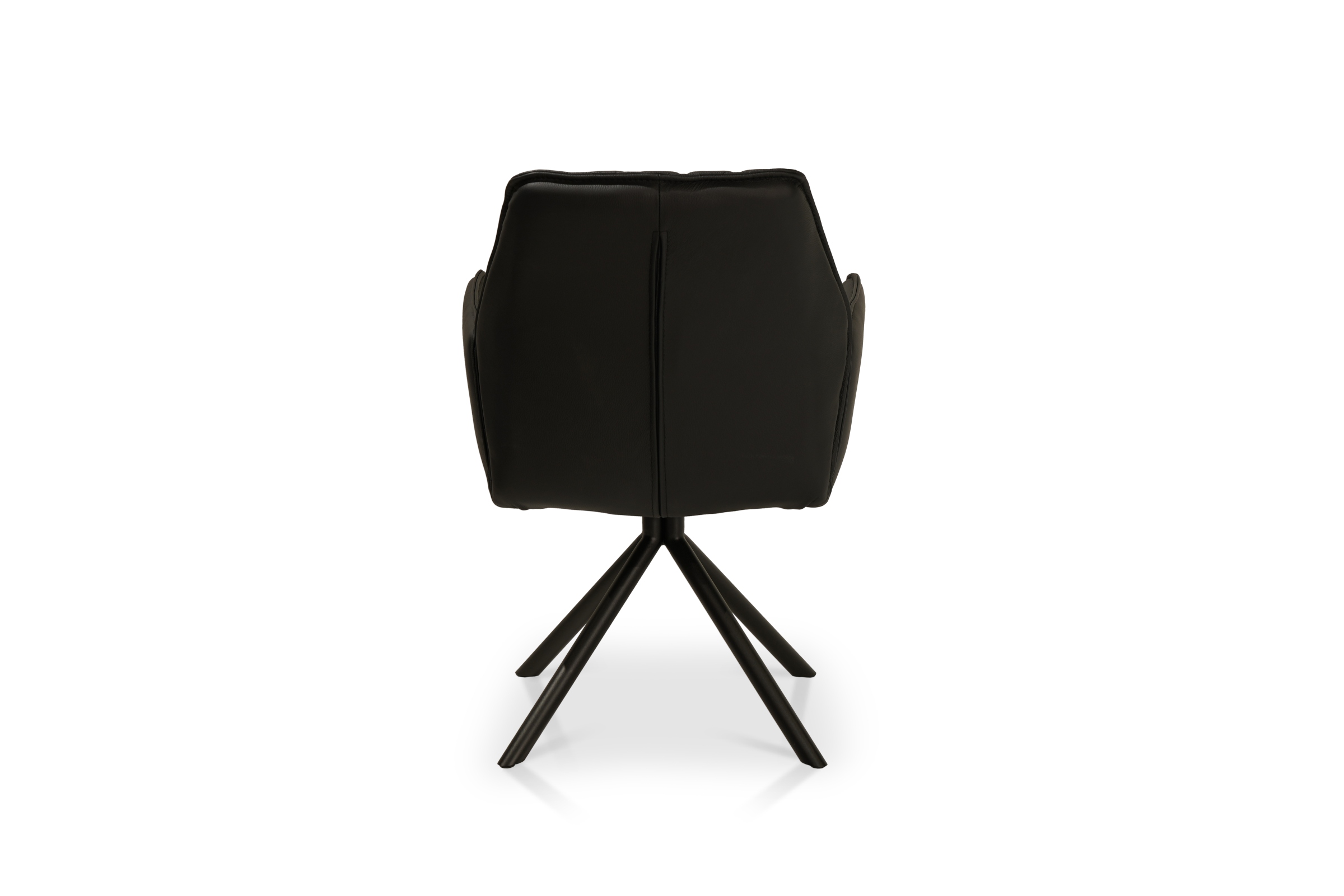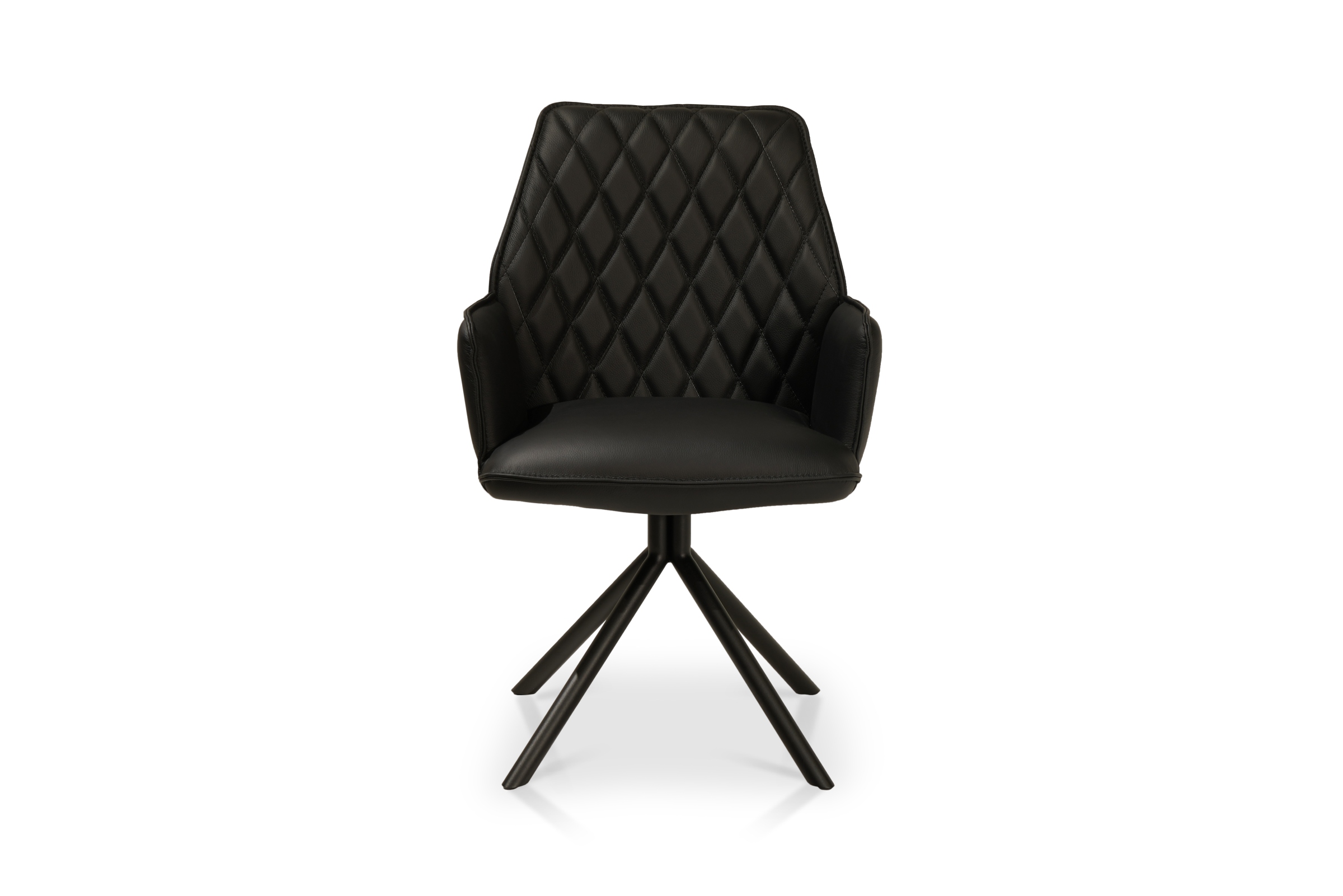 TC- K01 to wygodne krzesło z podłokietnikiem na metalowych nogach. Idealne do wnętrza w stylu loft. Pięknie współgra ze stołem ze spieku kwarcowego. Egzemplarz na zdjęciu wykonany z naturalnej skóry bydlęcej w czarnym kolorze (Toledo Nero)