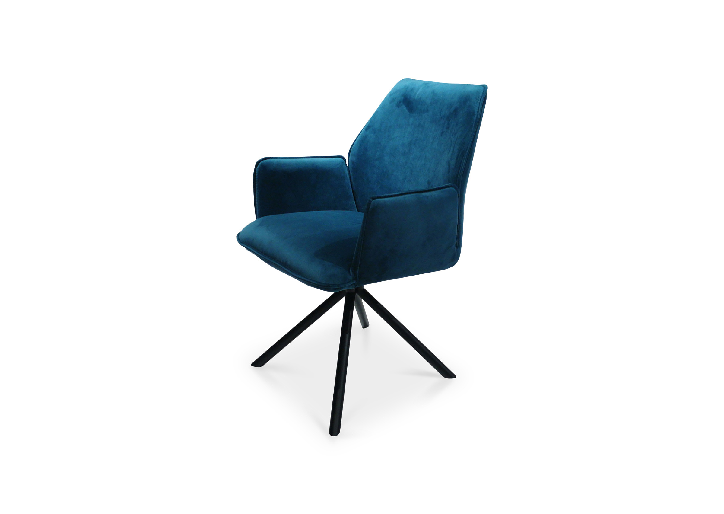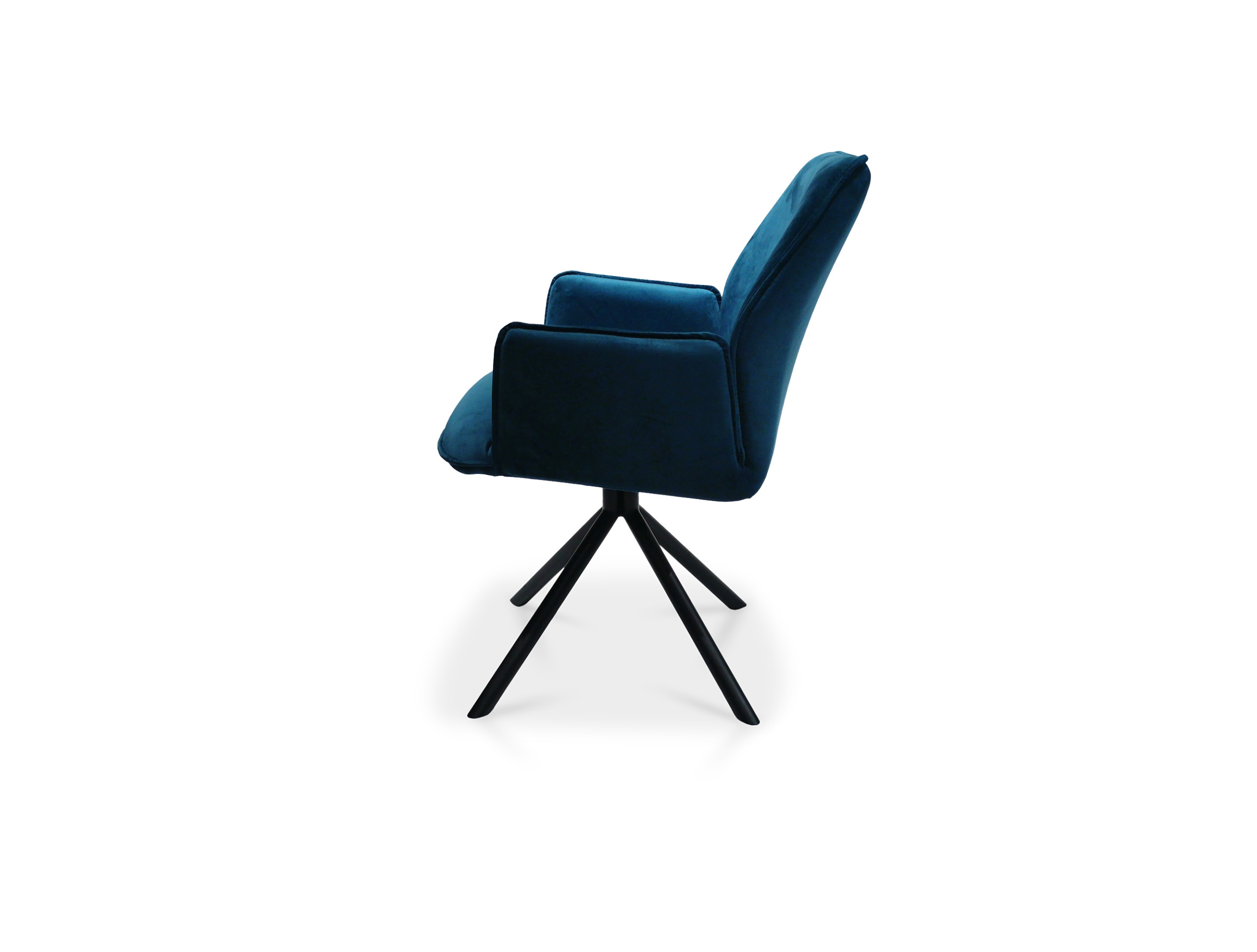 Niebieskie eleganckie krzeslo z podlokietnikami na czarnych nozkach bez mozliwosci obracania welurowa tkaniana granatowa paris elastron e1727699445432