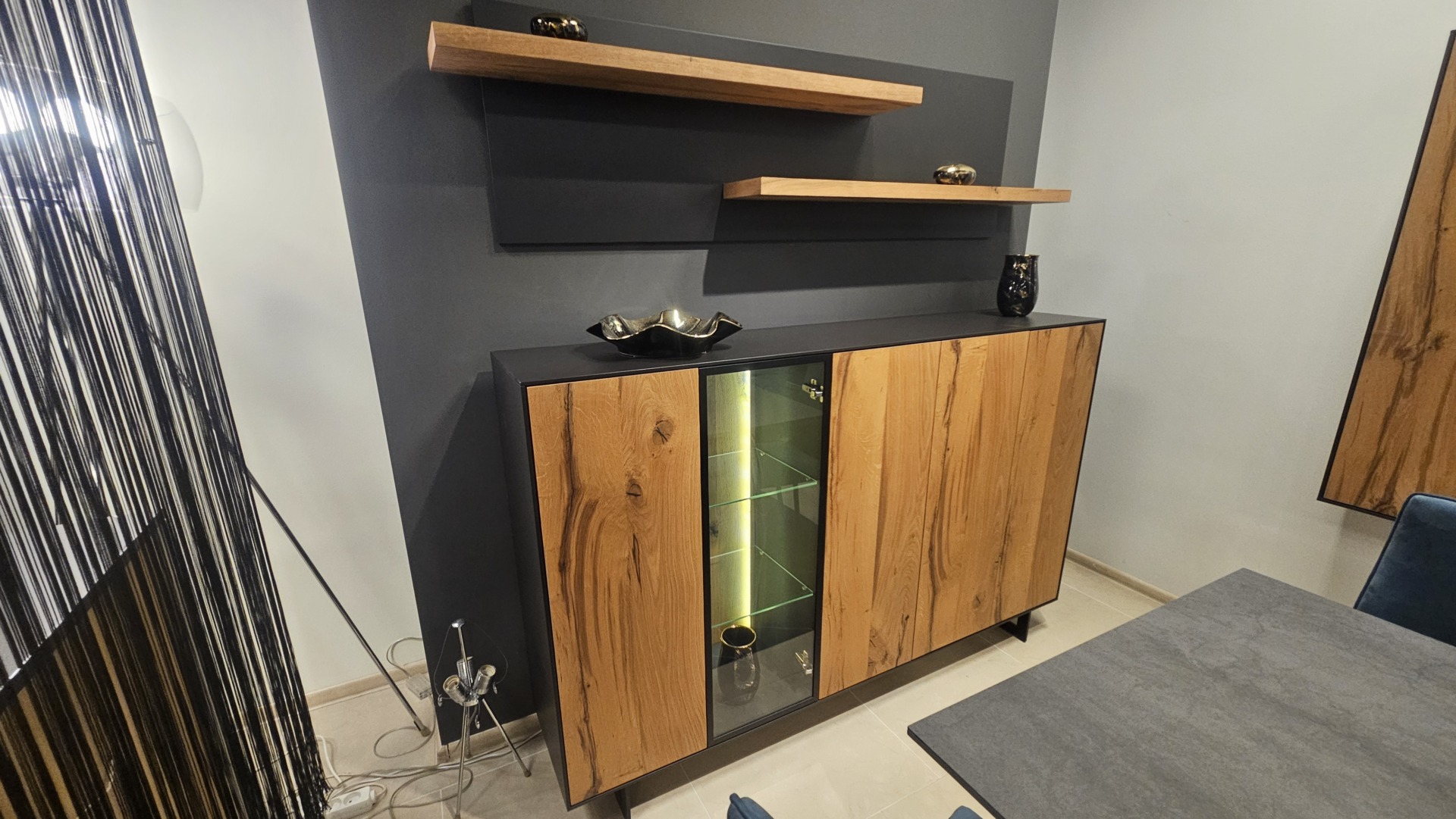 Kolor korpusów: Lakier 8500 NCS Mat / Frony: Fornir sękaty szczotkowany