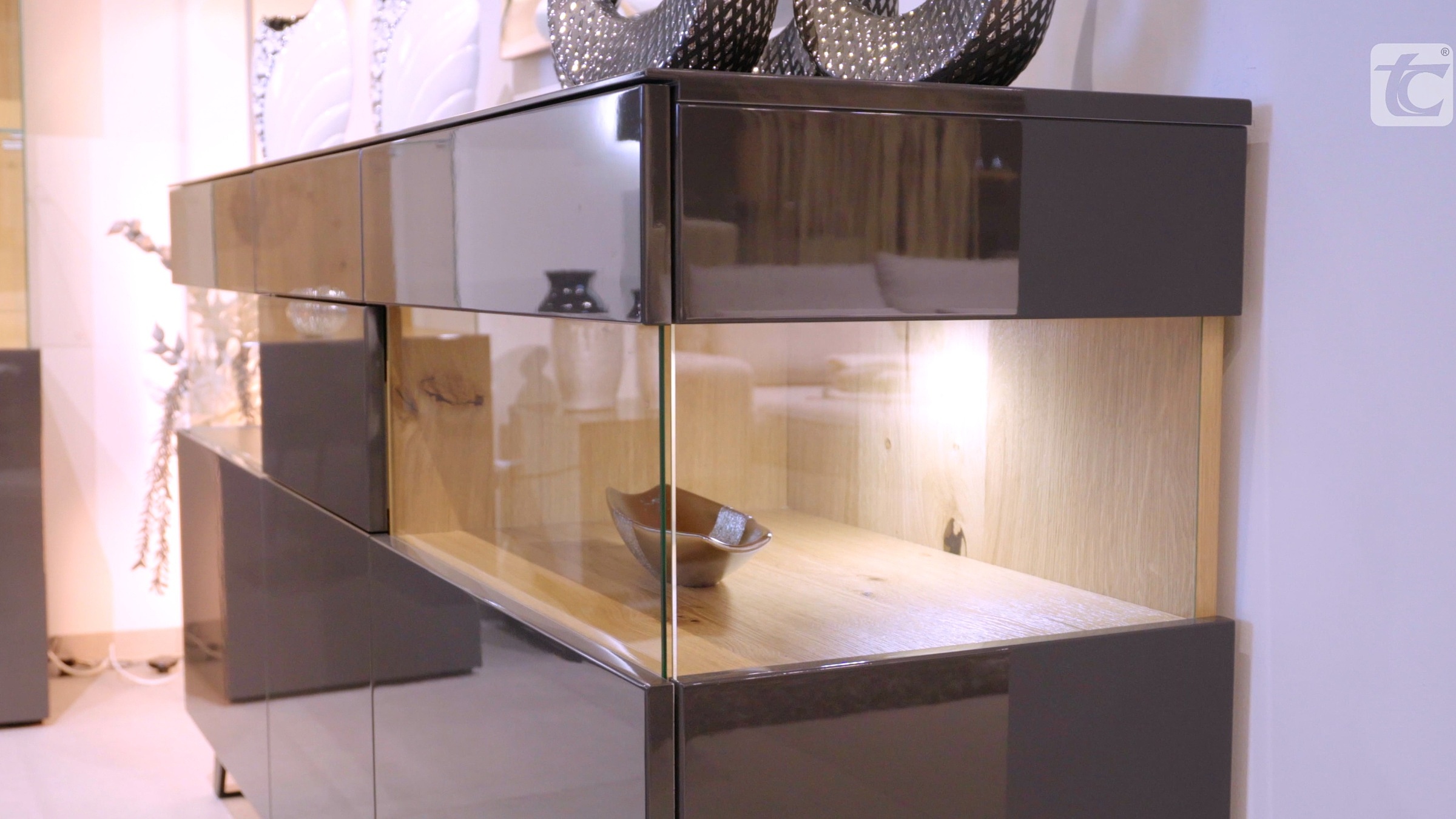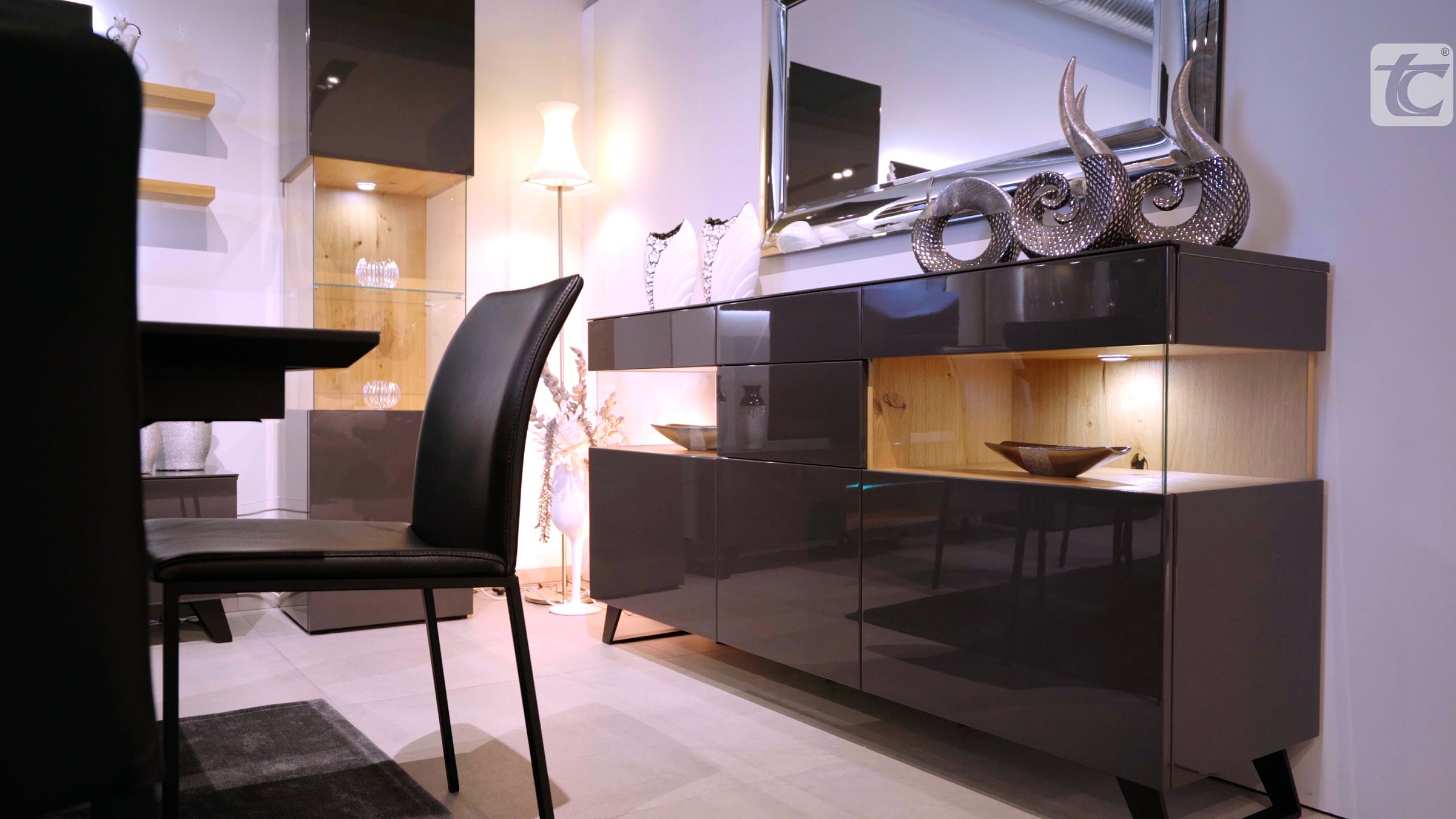 Meble na wysoki połysk, w dodatku obficie oświetlone, nadadzą blasku nawet słabo oświetlonym wnętrzom. Kolor szary jest wyjątkowo uniwersalny i bardzo dobrze komponuje się z jaskrawymi, wyrazistymi dodatkami. Takie meble stanowią zatem znakomitą bazę dla aranżacji wyrafinowanych i niebanalnych. Meble Zeus IV o prostych kształtach i w neutralnym kolorze mogą być całkowicie zabudowane lub przeszklone. Te drugie wewnątrz pokryte są okleiną dąb sękaty. W przypadku wersji bez sęków można wybrać inny odcień.