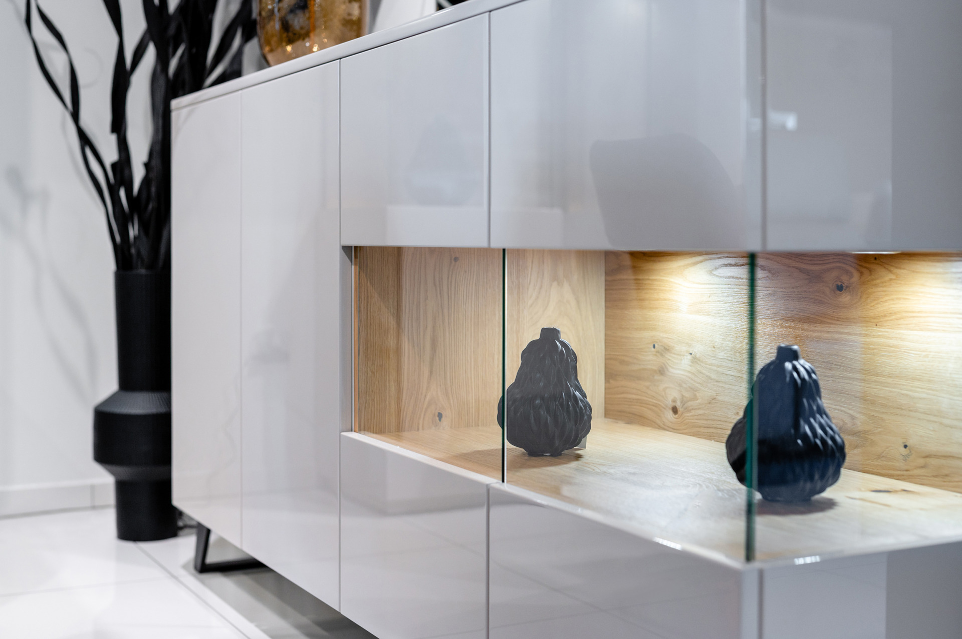 ZEUS – BIAŁE NOWOCZESNE MEBLE LAKIEROWANE WYSOKI POŁYSK | OŚWIETLENIE